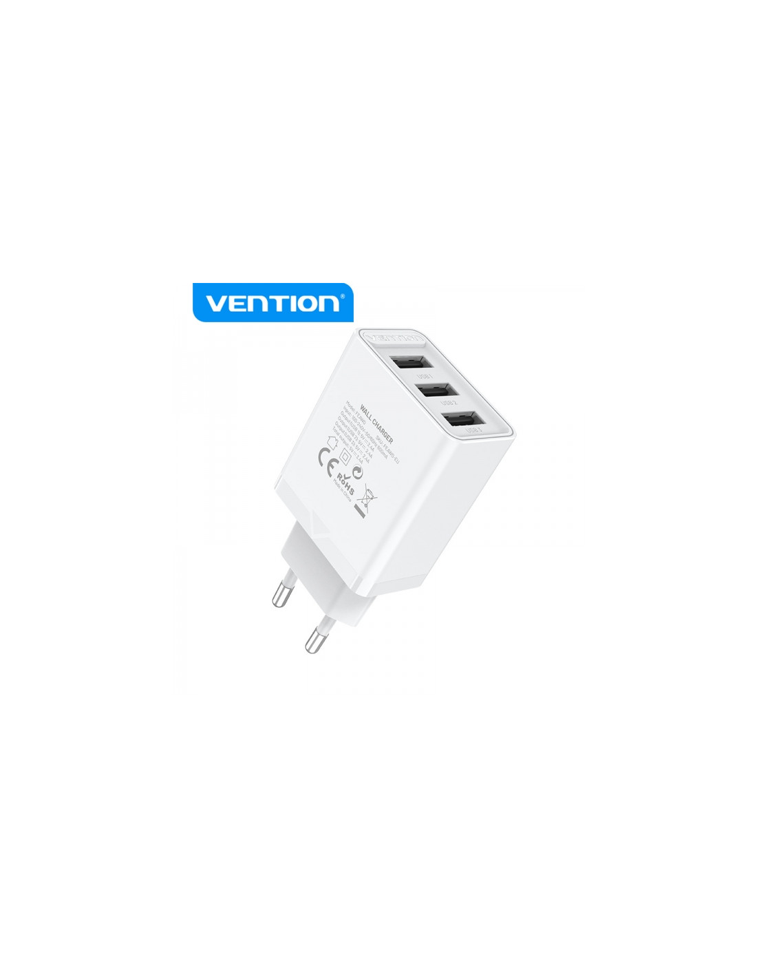 VENTION FEAW0-EU Cargador de pared USB de 3 puertos (A+A+A) (12W/12W/12W)
