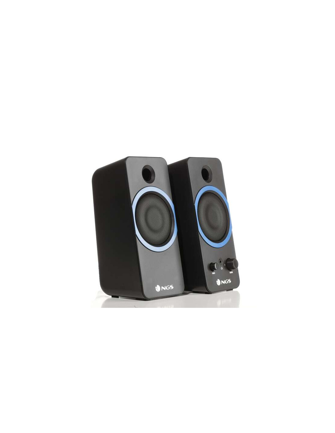 NGS GSX-200 Altavoces USB 2.0 20W - Supergraves - Conexion Jack 3.5mm - Controles en Altavoz - Color Negro/Azul
