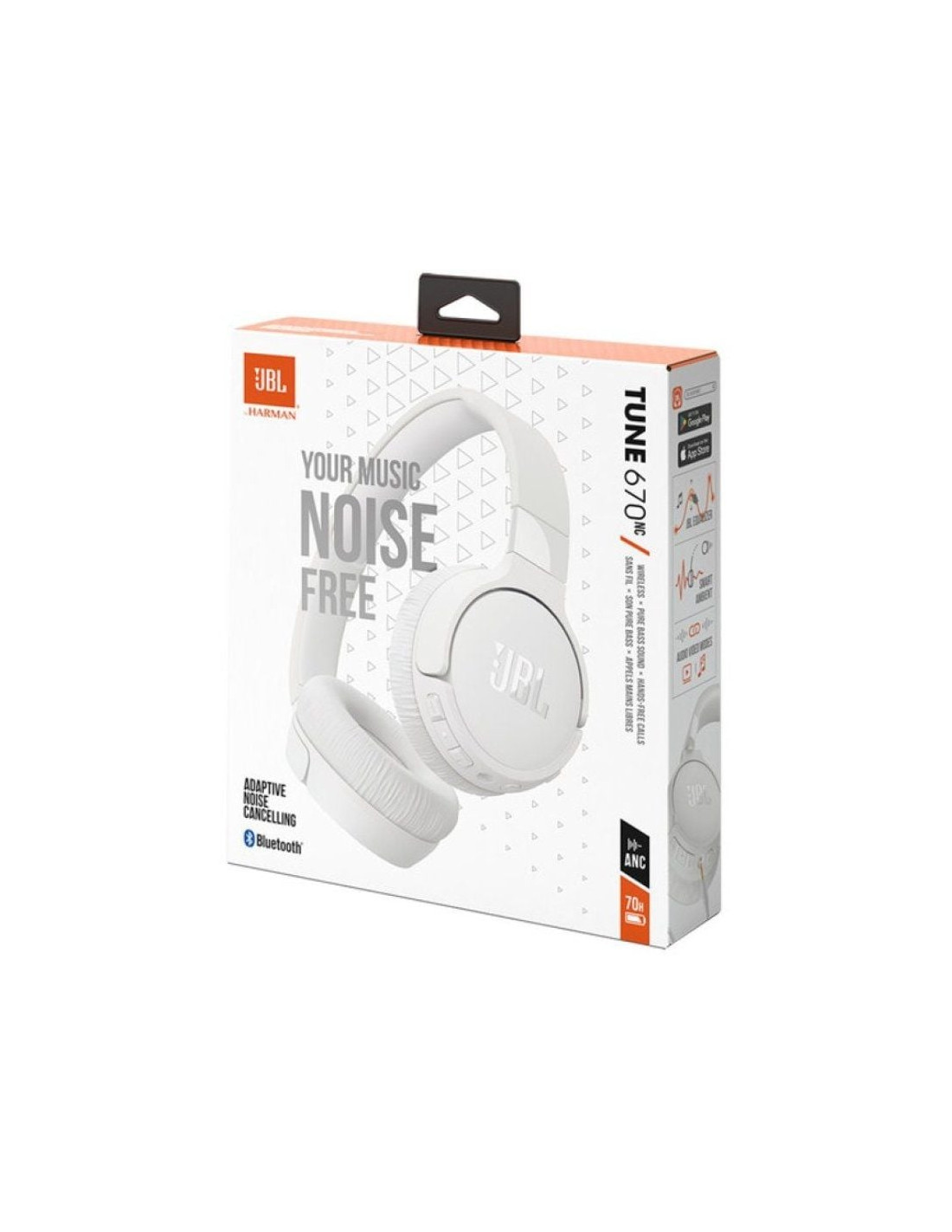 Ligereza, comodidad y sonido excelente. Con los auriculares inalámbricos JBL Tune 670NC con cancelación de ruido adaptativa, tendrá las tres cosas. Con hasta 70 horas de batería, el JBL Tune 670NC te ayudará a superar tu semana, sin necesidad de volver a cargar. Y si necesitas una carga rápida, 5 minutos te proporcionan 3 horas adicionales de música, o simplemente enchufa el cable extraíble de los auriculares para continuar escuchando. JBL Tune 670NC se conecta a dos dispositivos Bluetooth® simultáneamente, por lo que nunca te perderás una llamada mientras ves una película en tu tableta. Descarga la aplicación gratuita JBL Headphones para adaptar el sonido a tus gustos. Las indicaciones de voz te guiarán en tu idioma a través de las funciones. Gestiona tus llamadas y tu asistente de voz sin problemas desde tu teléfono y utiliza VoiceAware para oírte cuando hables. Y, además, puedes elegir el color que mejor represente tu esencia.