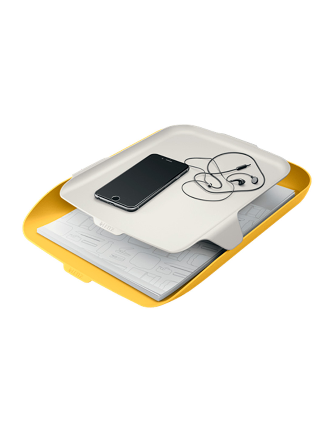 La bandeja de sobremesa Leitz Cosy en color amarillo es una solución elegante y eficiente para organizar tus documentos en la oficina o en casa. Fabricada en poliestireno de alta calidad, esta bandeja no solo ofrece una gran capacidad, sino que también es parte de un sistema modular que permite apilar bandejas de diferentes tamaños de manera vertical o escalonada. Su diseño moderno se integra perfectamente con la gama de archivo de sobremesa Plus de Leitz, brindando un toque de estilo a cualquier entorno.