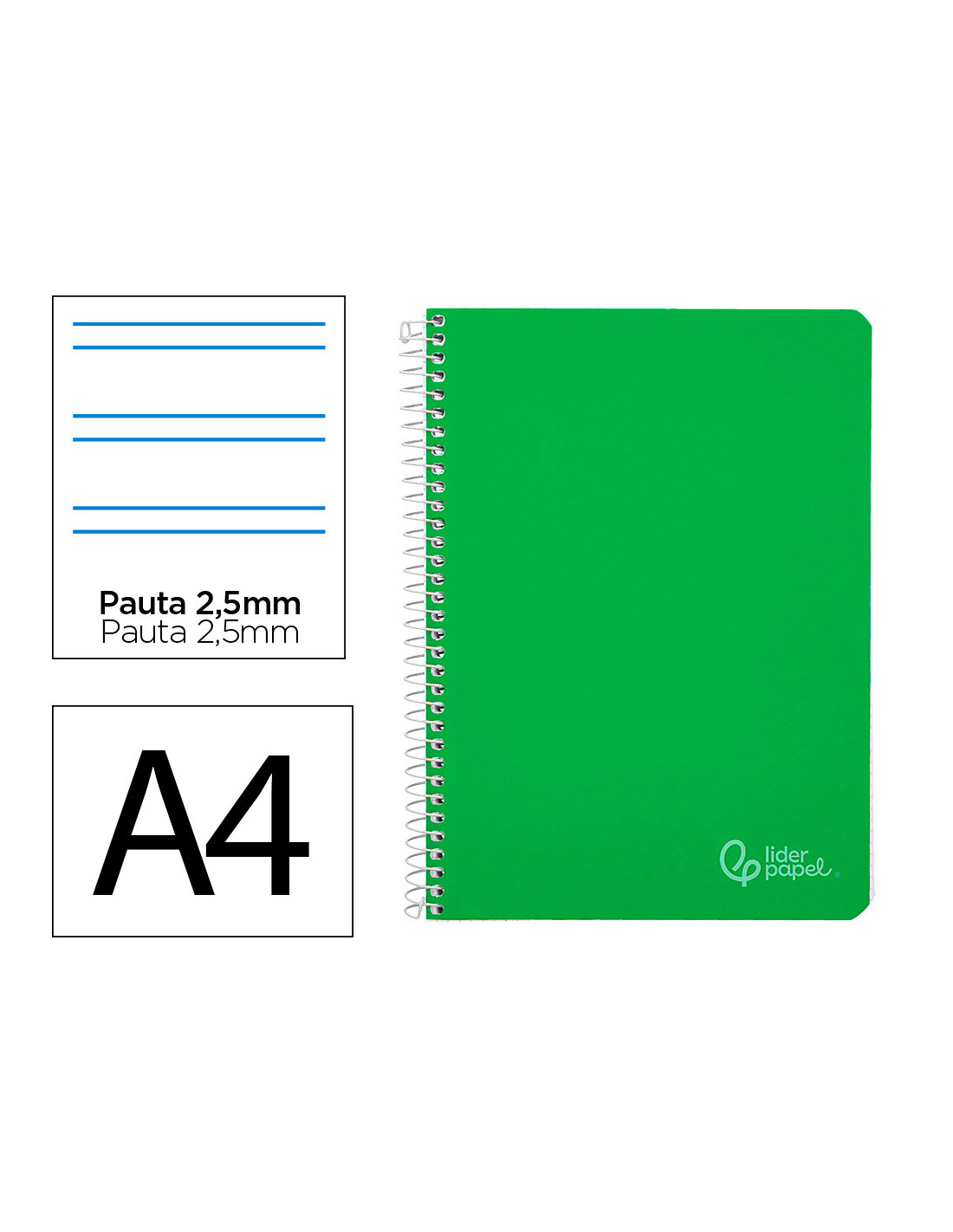 Cuaderno espiral liderpapel folio write tapa blanda 80h 60gr pauta 2,5 mm con margen...