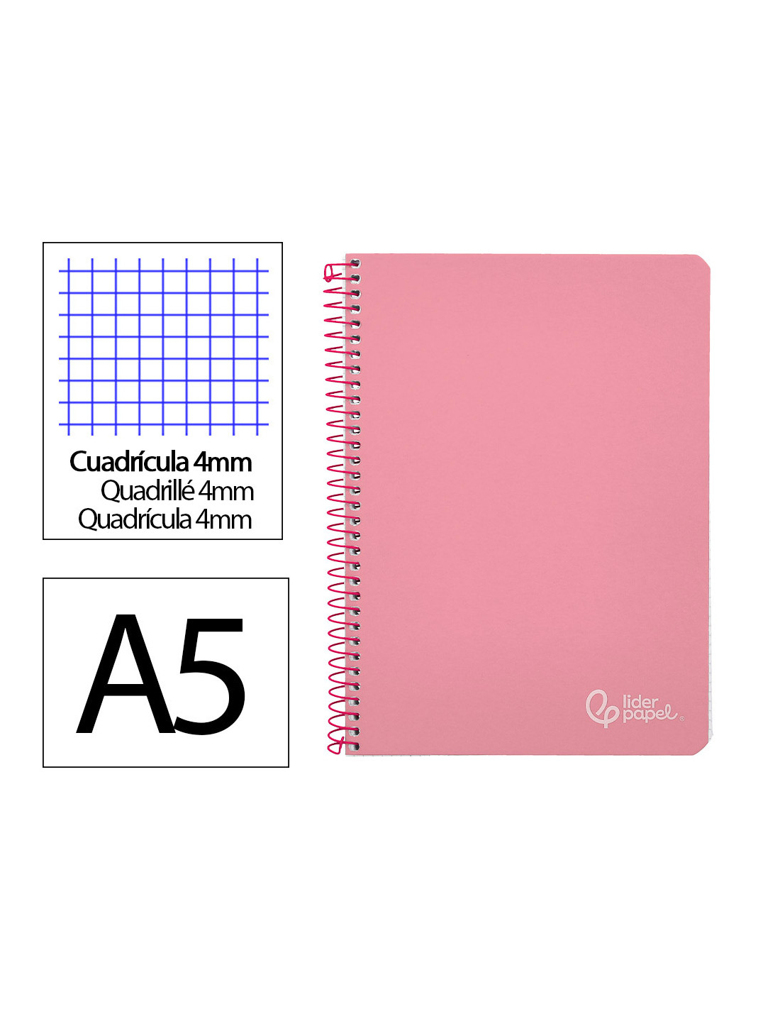 Cuaderno espiral liderpapel a4 wonder tapa plastico 80h 90gr cuadro 4mm con margen...
