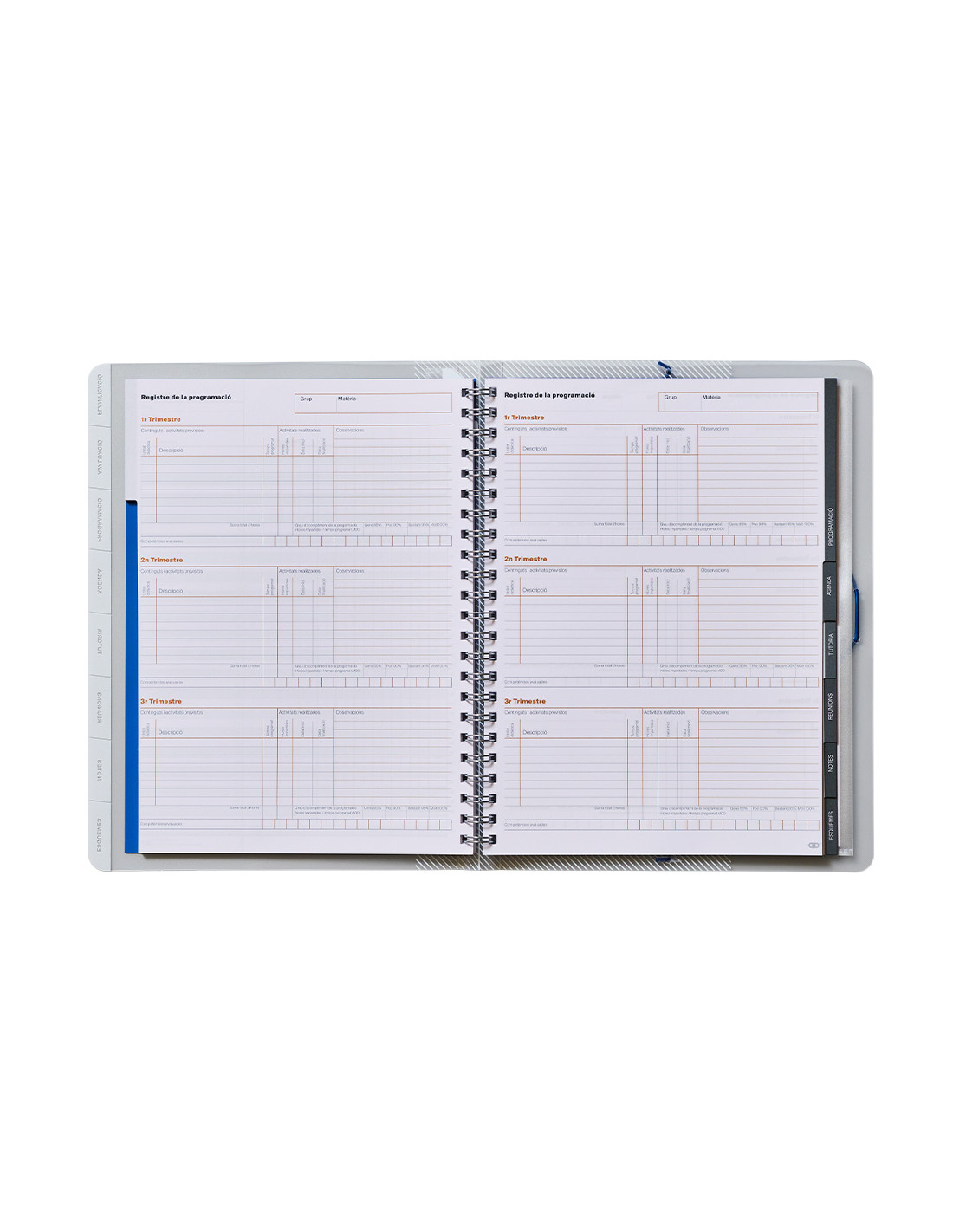 Con una cuidadosa organización por pestañas, doble espiral, regla marca páginas, y fundas de polipropileno, esta carpeta se convierte en un aliado esencial para los profesores que buscan centralizar y simplificar la gestión de sus actividades diarias, incrementando así su eficiencia en el entorno educativo. |