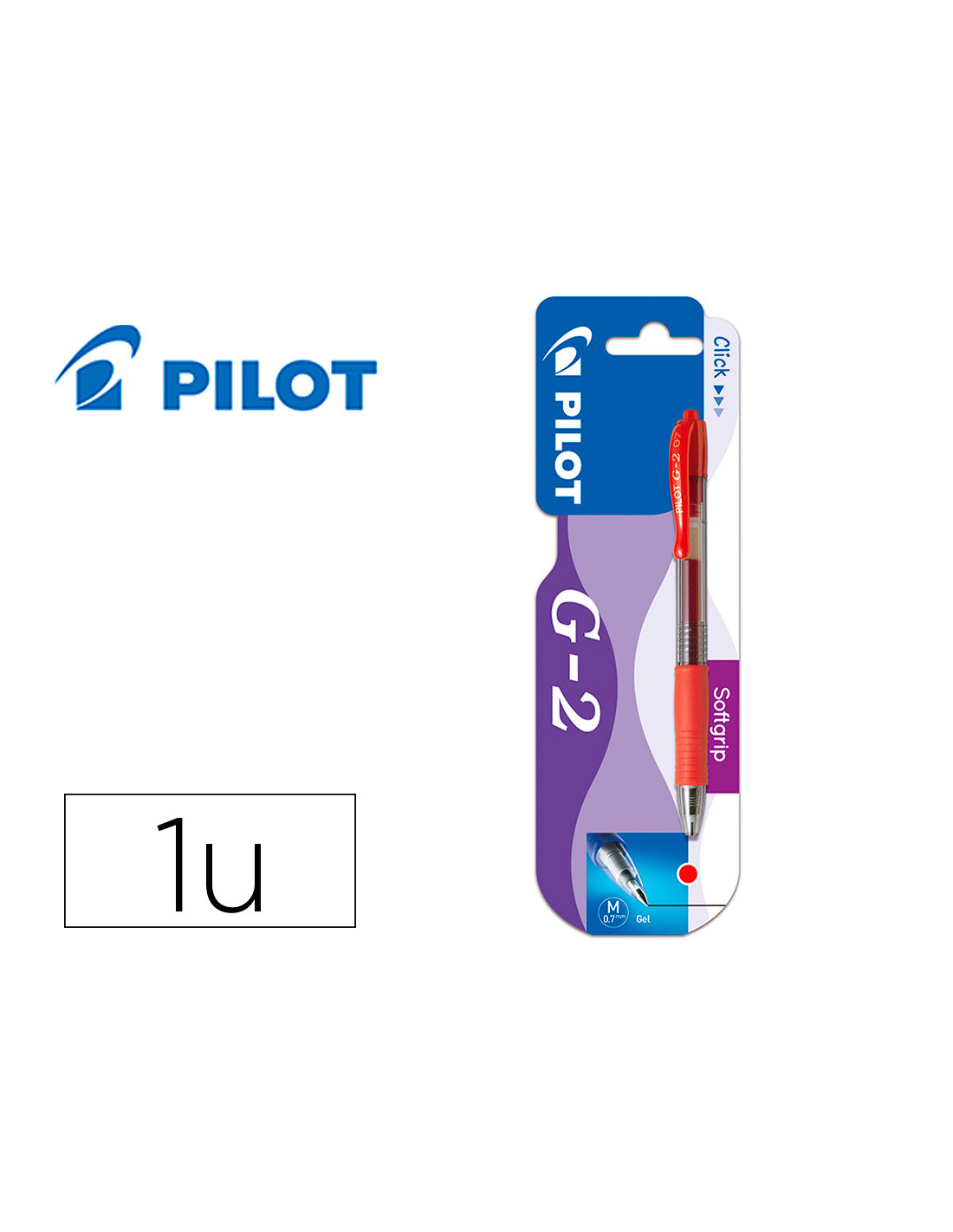 Boligrafo pilot g-2 rojo tinta gel retractil sujecion de caucho en blister