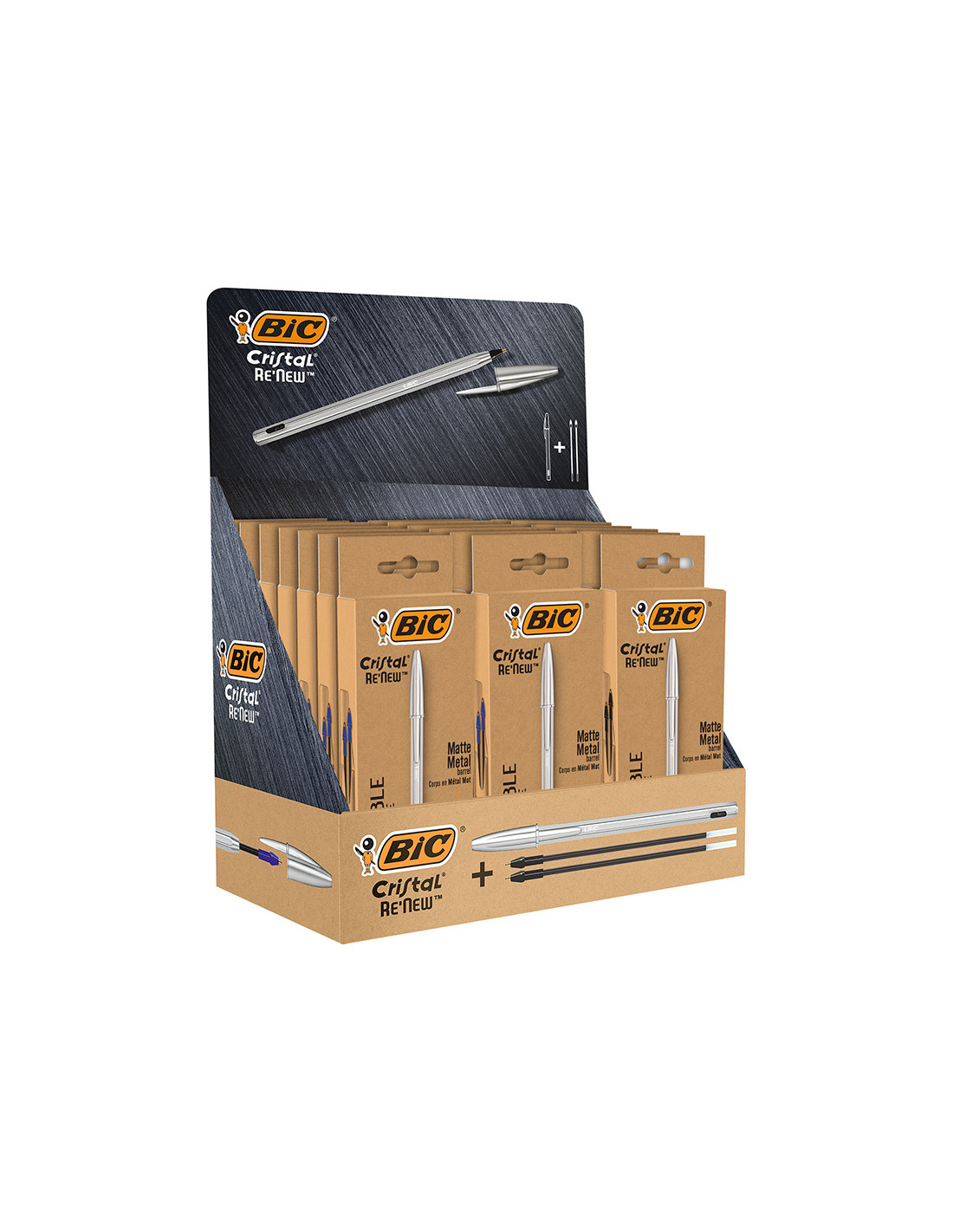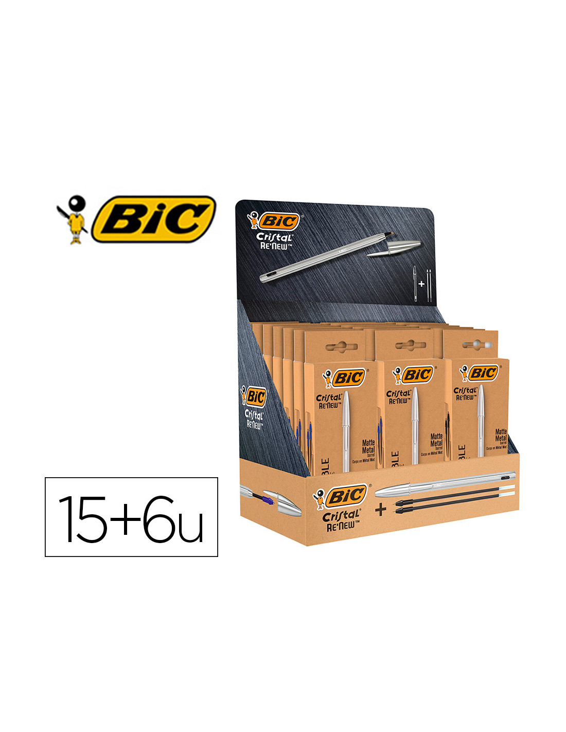 Boligrafo bic cristal renew cuerpo en aluminio mate tinta azul + 2 recambios en caja de...