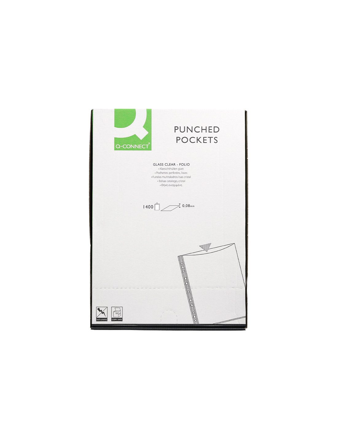 Funda portadocumento q-connect folio doble 180 micras pvc transparente 330x470mm
