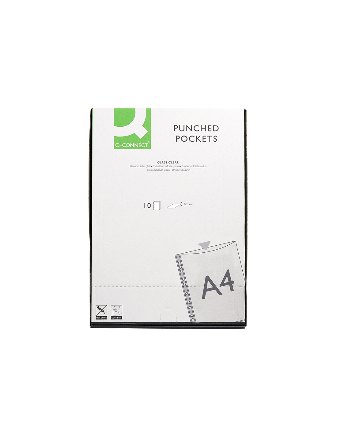 Funda multitaladro q-connect din a4 100 mc cristal caja de 100 unidades