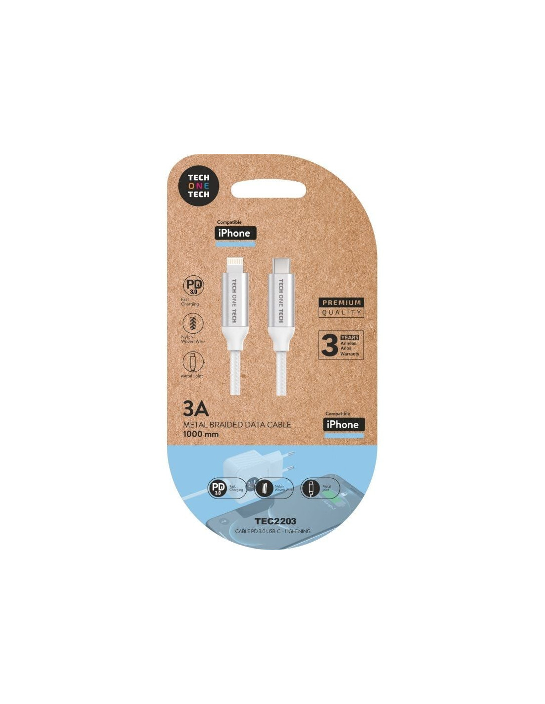 - Cable USB-C power delivery (PD) con conexión lightning-apple.