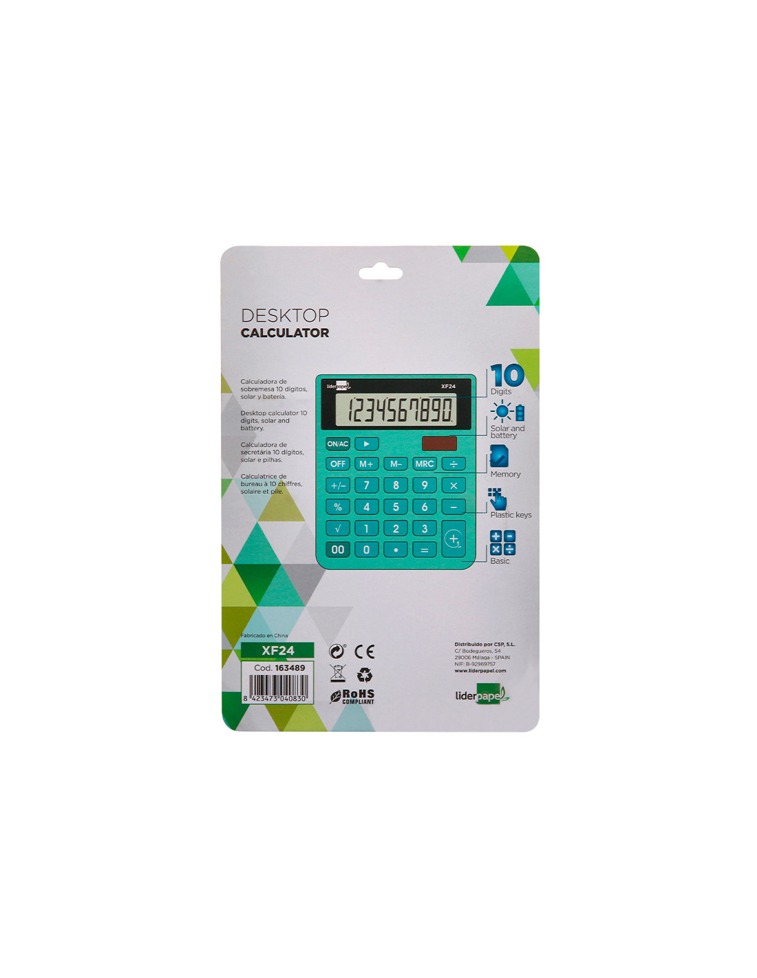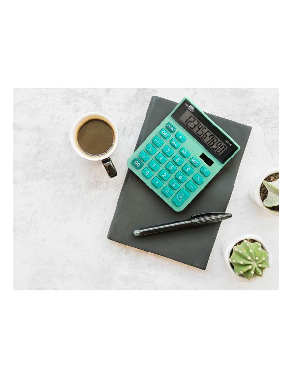 La calculadora de sobremesa Liderpapel XF24 es una herramienta confiable y eficiente para realizar operaciones aritméticas tanto básicas como avanzadas. Con un diseño compacto y un atractivo color verde, esta calculadora no solo facilita tus tareas matemáticas, sino que también añade un toque de estilo a tu escritorio.