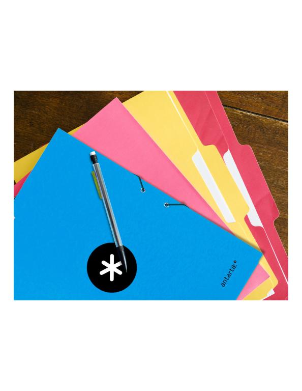 La Carpeta Antartik con gomas y tres solapas es la elección perfecta para quienes buscan una solución práctica y estilizada para la organización de documentos en formato A4. Fabricada en cartón forrado de 1,75 mm de espesor y plastificada en mate con detalles en barniz UVI, esta carpeta no solo ofrece durabilidad, sino también un acabado elegante y profesional.