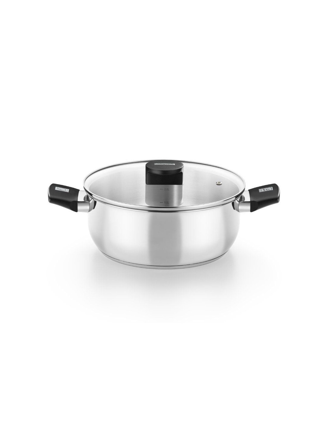 - Tapa de vidrio termoresistente con aro de acero inoxidable.