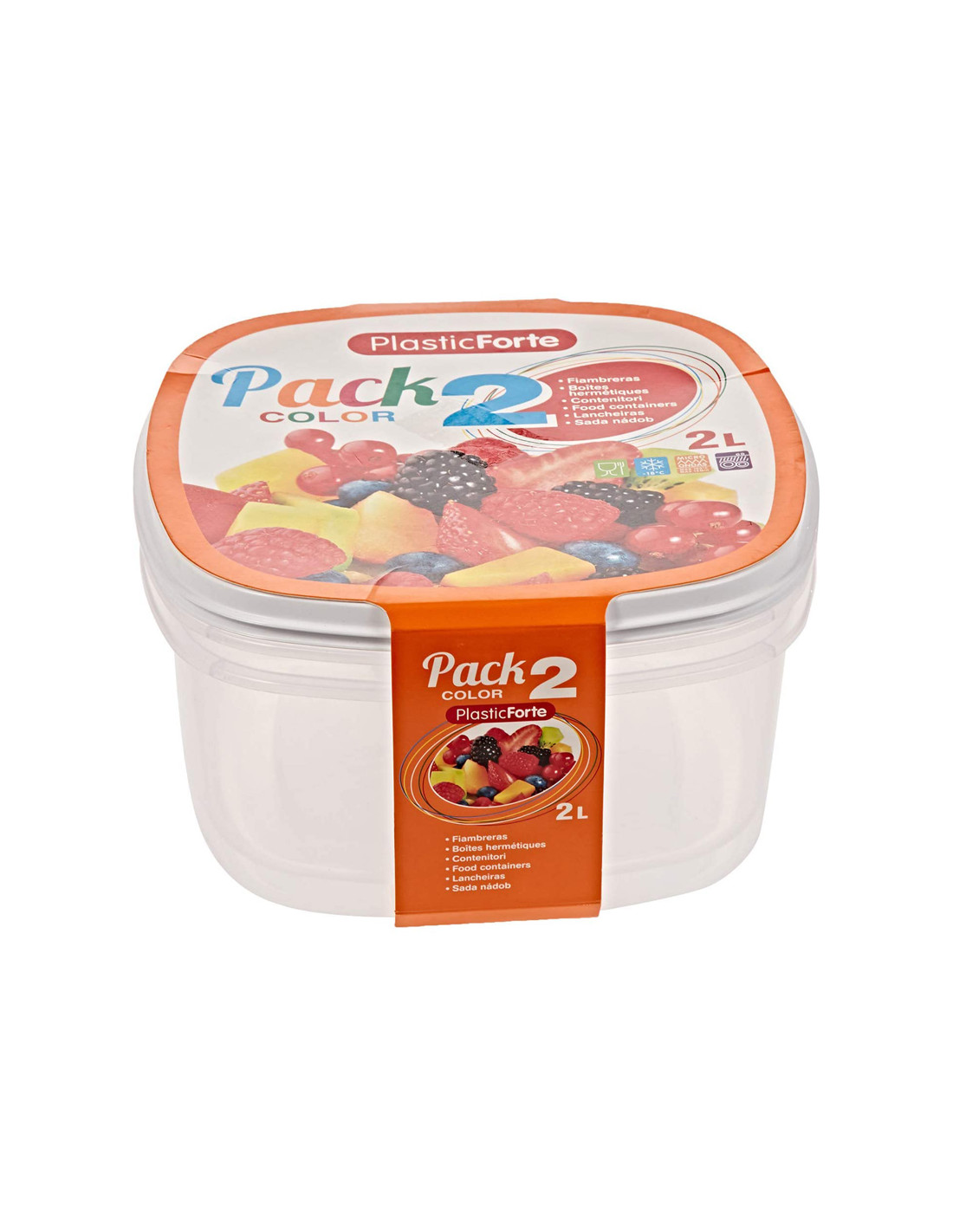 Fiambrera plasticforte transparente tapa color 0,7 litros pack 2 unidades