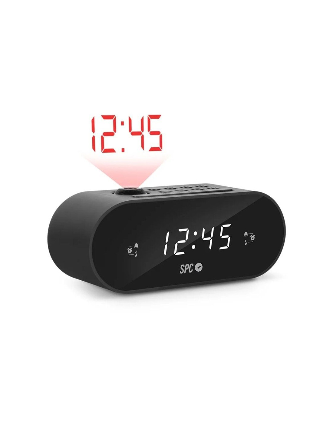 Ahora podrás ver la hora tanto en su gran pantalla LED de 0,9 como en el techo de tu habitación. Abre un ojo por la noche, mira qué hora es sin cambiar de posición y, ¡sigue durmiendo!2 MEJOR QUE 1