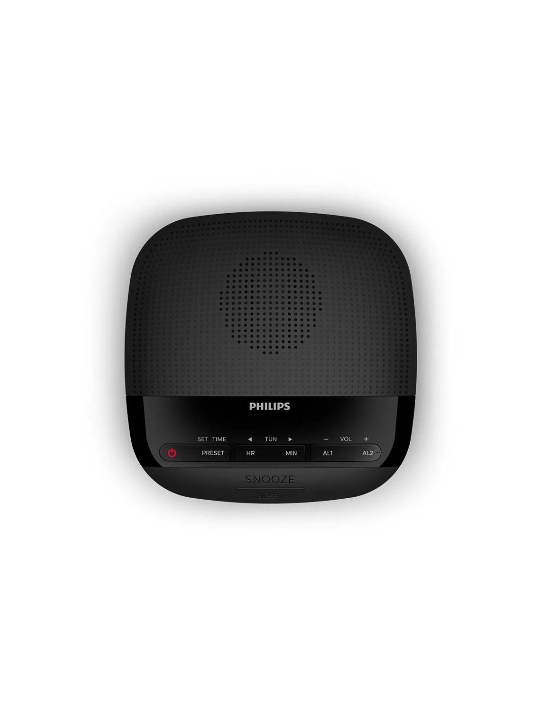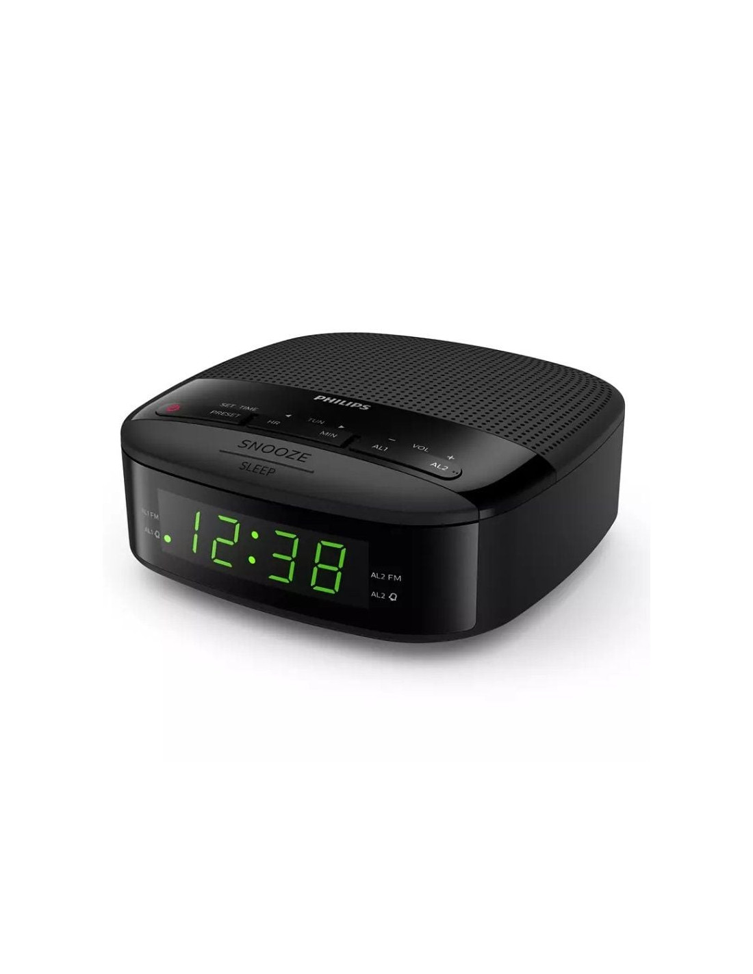 Duerme plácidamente con tu emisora favorita de fondo. Puedes configurar el temporizador del reloj para que reproduzca la radio durante un máximo de 2 horas. Una vez transcurrido el tiempo preestablecido, la radio se apagará.Alarma dual. Un reloj, dos alarmas.