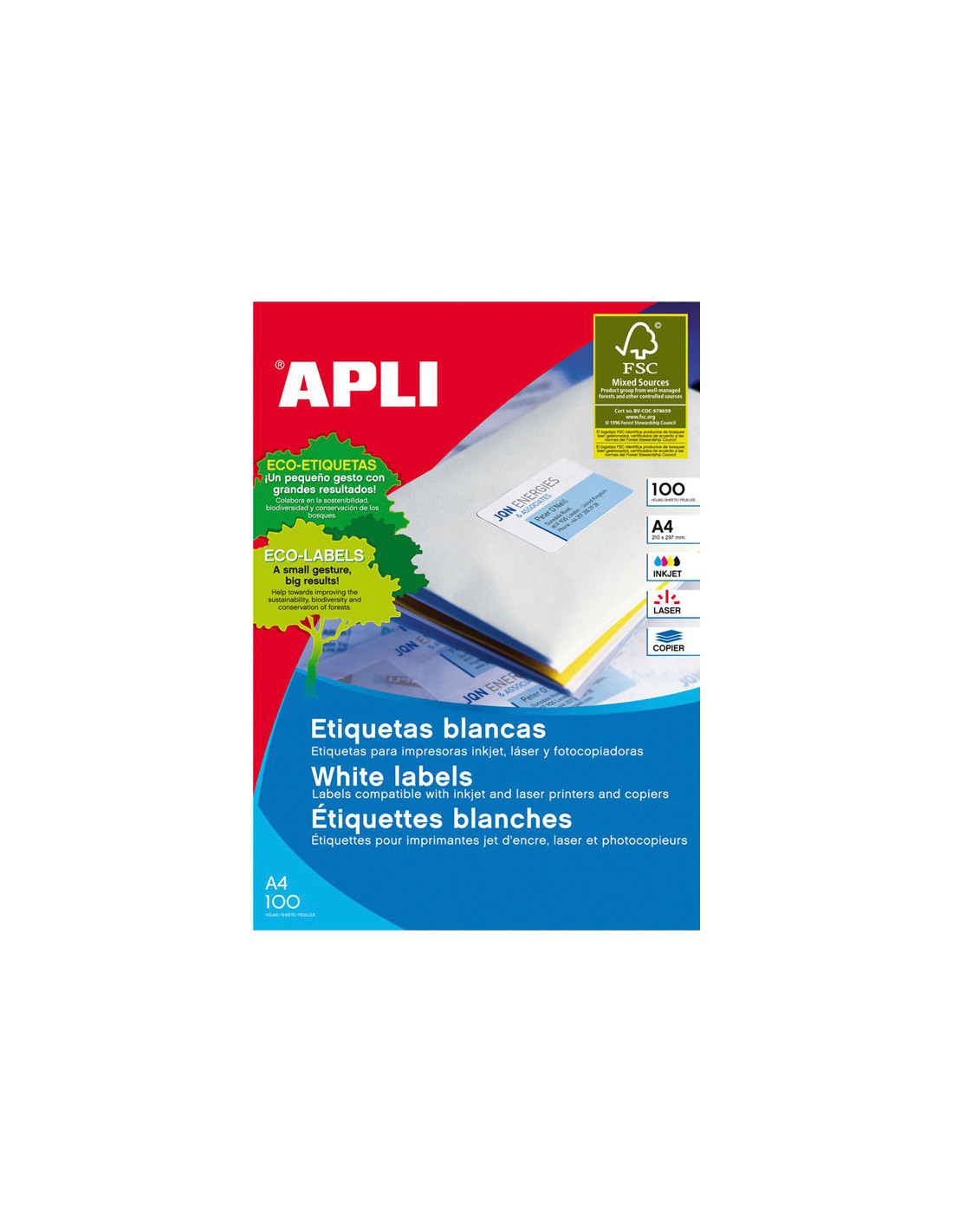 Con las etiquetas APLI, disfrutarás de una impresión de alta calidad facilitada por su diseño pre-cortado y listo para usar, lo que hace que cada proyecto de etiquetado sea rápido y eficiente. Su adhesivo confiable y la compatibilidad con múltiples dispositivos de impresión te aseguran que estas etiquetas se mantendrán en su lugar donde más lo necesitas. |