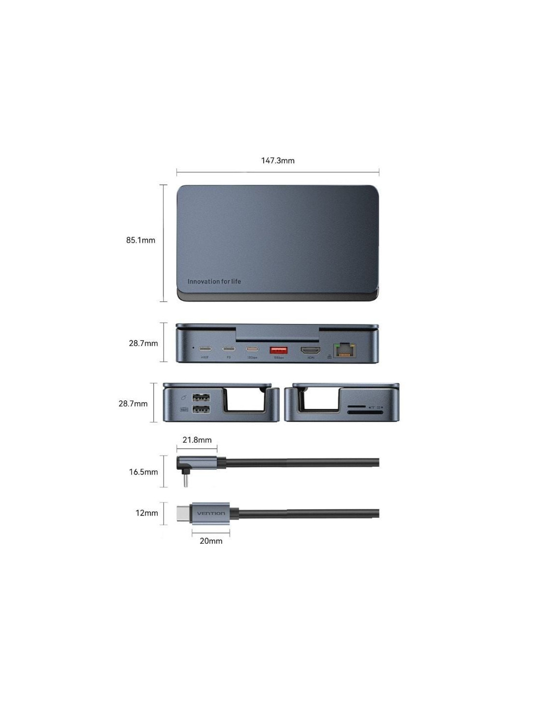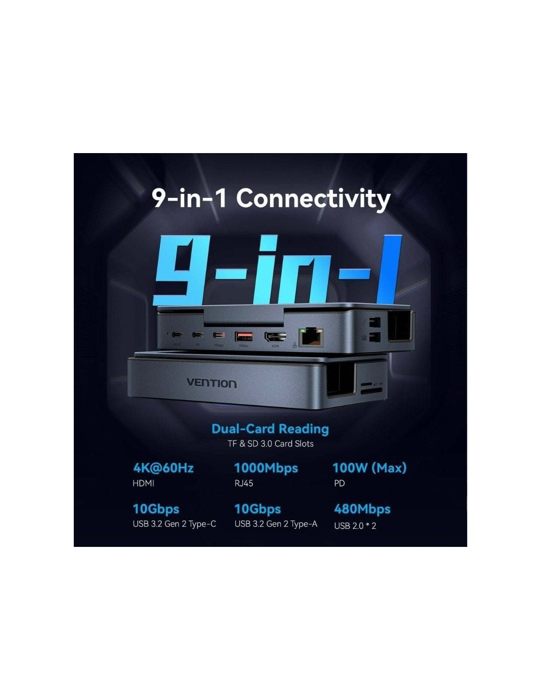 Docking USB Tipo-C para Steam Deck / Switch Vention TPZH0/ 2xHDMI 4K/ 3xUSB/ 1xUSB Tipo-C/ 1xUSB Tipo-C PD/ 1xRJ45/ 1xLector Tar