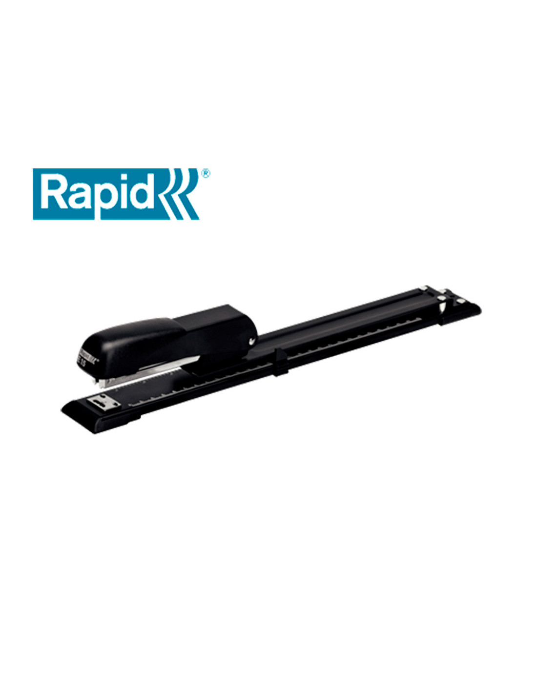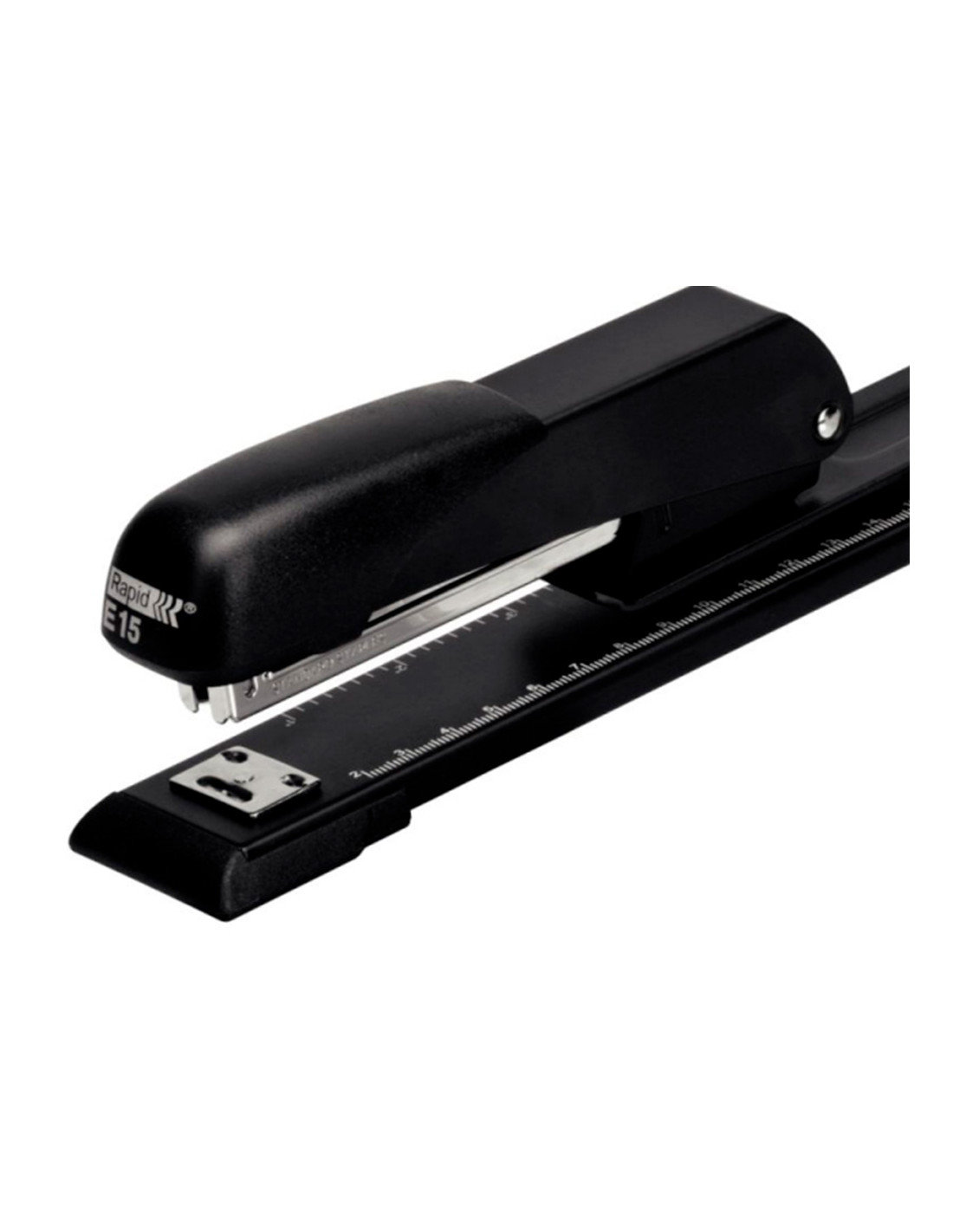 Grapadora rapid e15 metalica brazo largo capacidad 20 hojas usa grapas 24/6 y 26/26 color negro