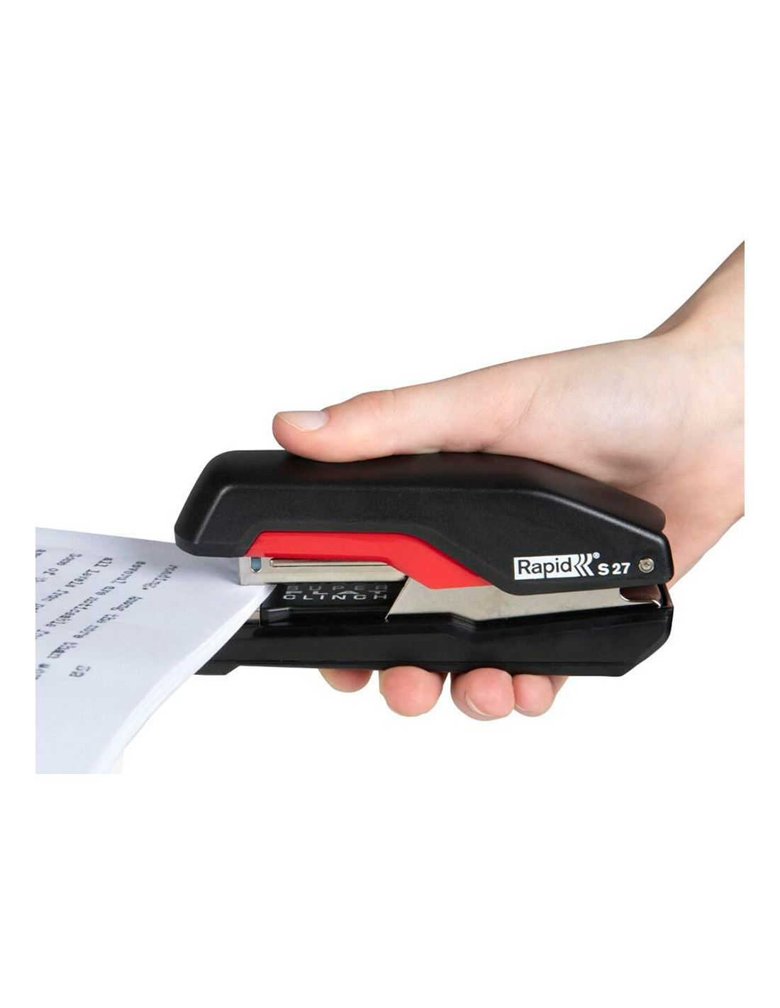 Grapadora rapid s27 fullstrip plastico capacidad de grapado 30 hojas usa grapas 24/6 y 26/6 color negro/rojo