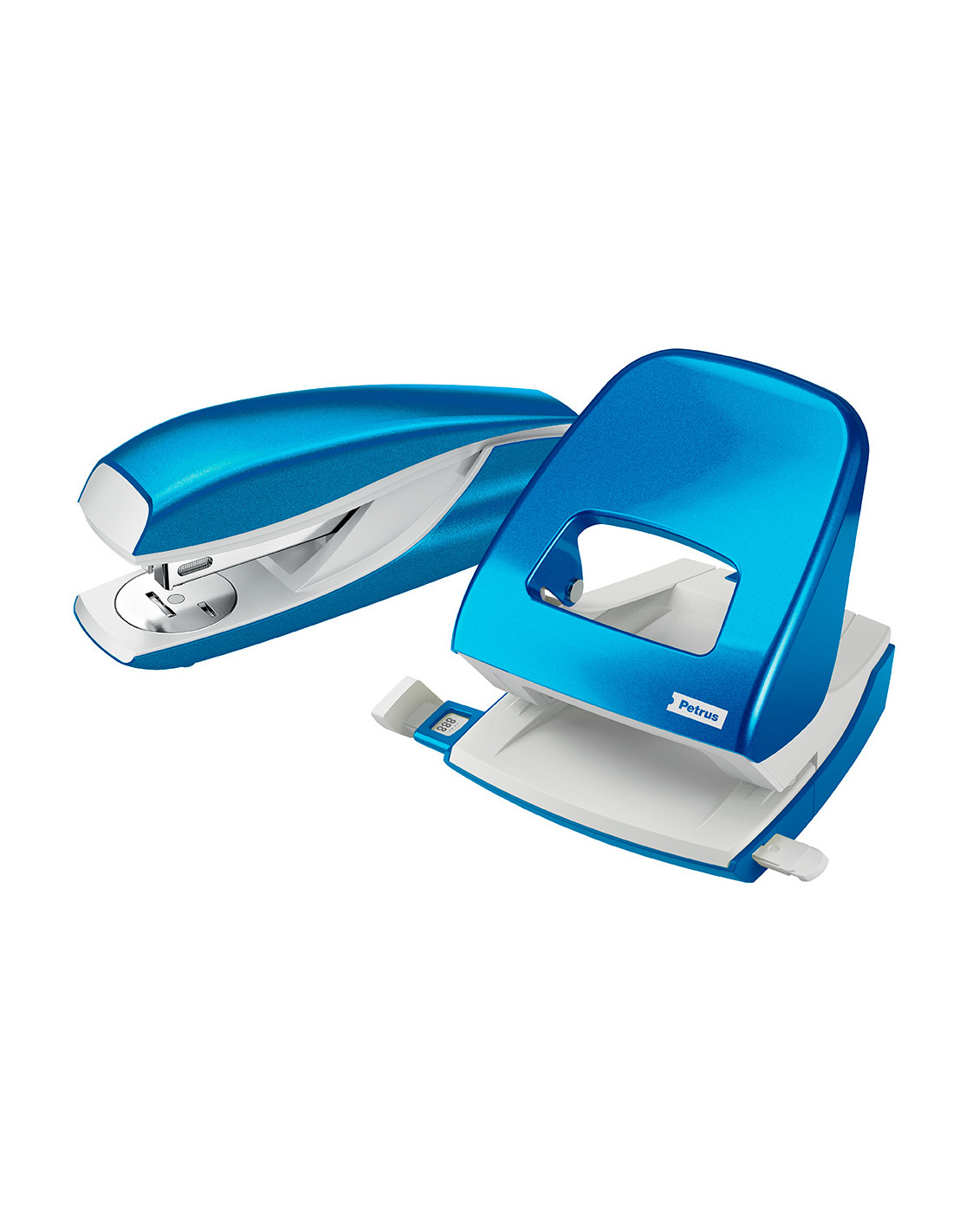 La resistente grapadora de metal Petrus Mod 635 WOW en color azul metalizado es ideal para el uso cotidiano. Gracias a su tecnología de impacto directo patentada y la utilización de grapas Petrus 22/6, 24/6 o 26/6, siempre obtendrás un grapado perfecto.