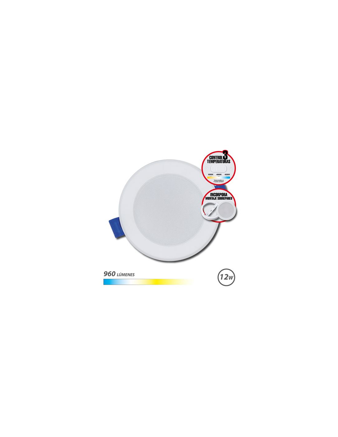 Elbat Downlight Circular 12W - 960Lm - Selector 3 Temperaturas + Sobrepared - Color Blanco