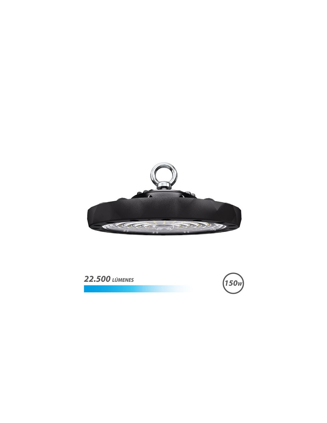 Elbat Lampara LED UFO de Techo - Potencia: 150W - Lumenes: 22500 - Luz Fria: 6500K - Ac 100-240V - Diametro: 28.6cm - Angulo aju
