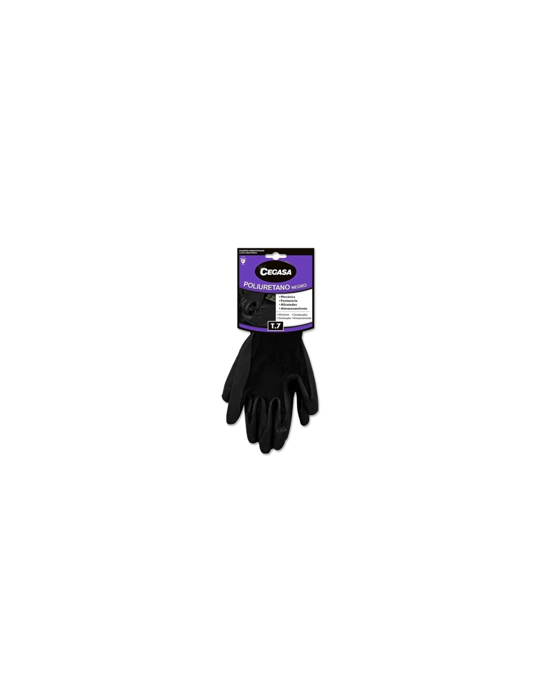 Cegasa Guantes de Trabajo Talla 7 - Fabricados en Poliester con Recubimiento de Poliuretano en Palma - Color Negro