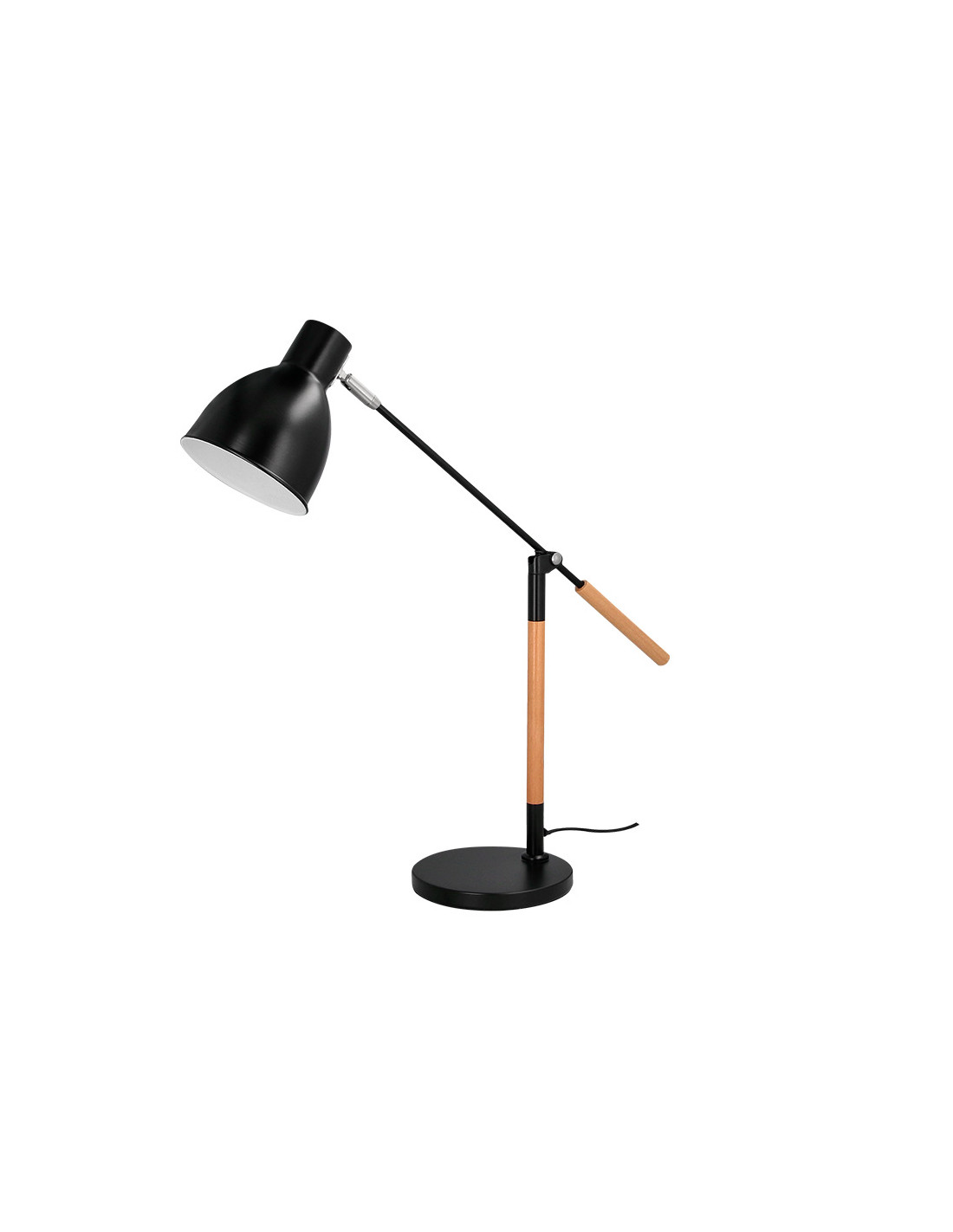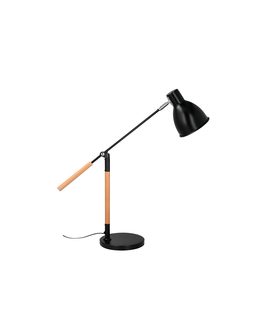 Lampara de escritorio q-connect deneb metalica con detalles de madera interruptor2 articulaciones color negro