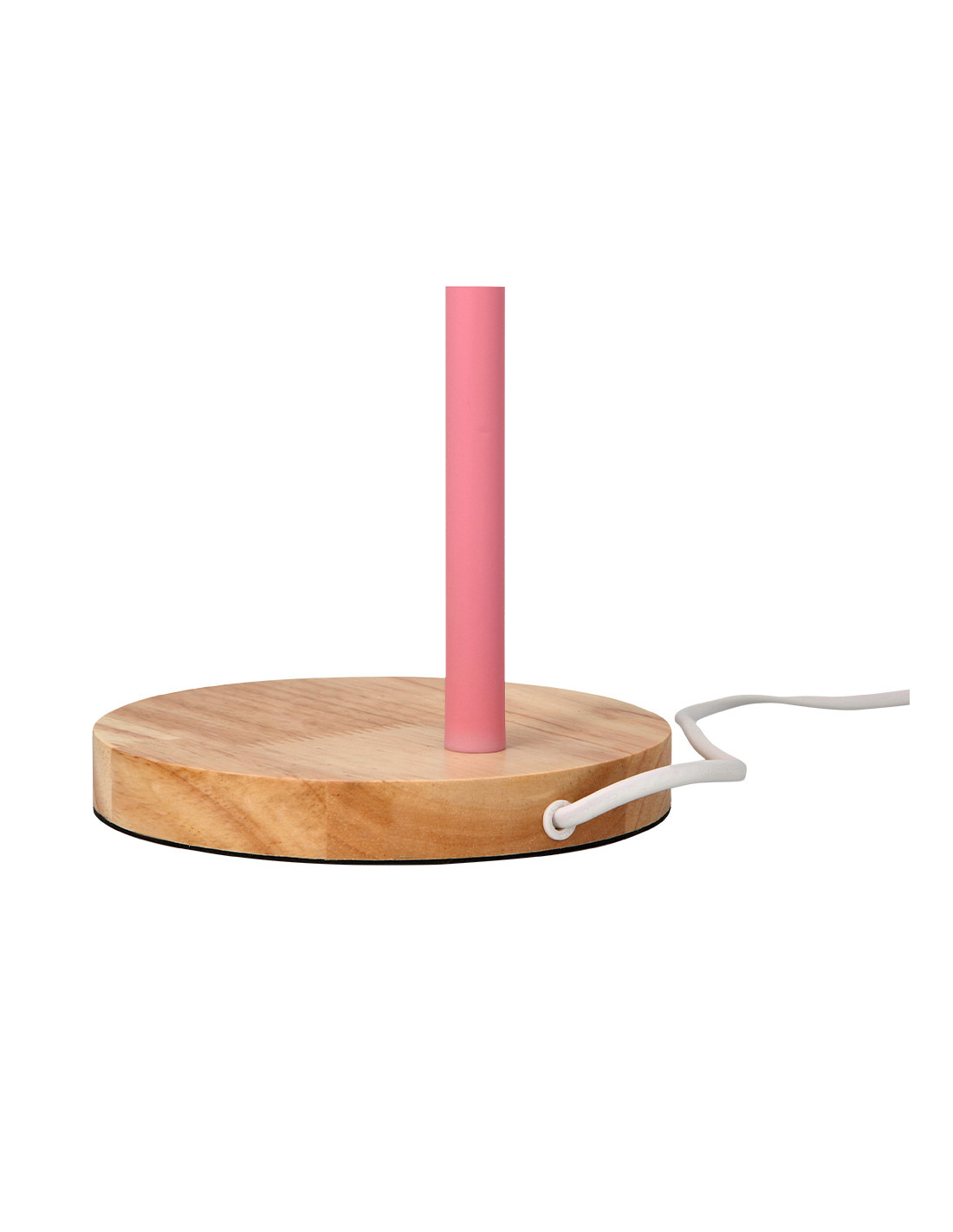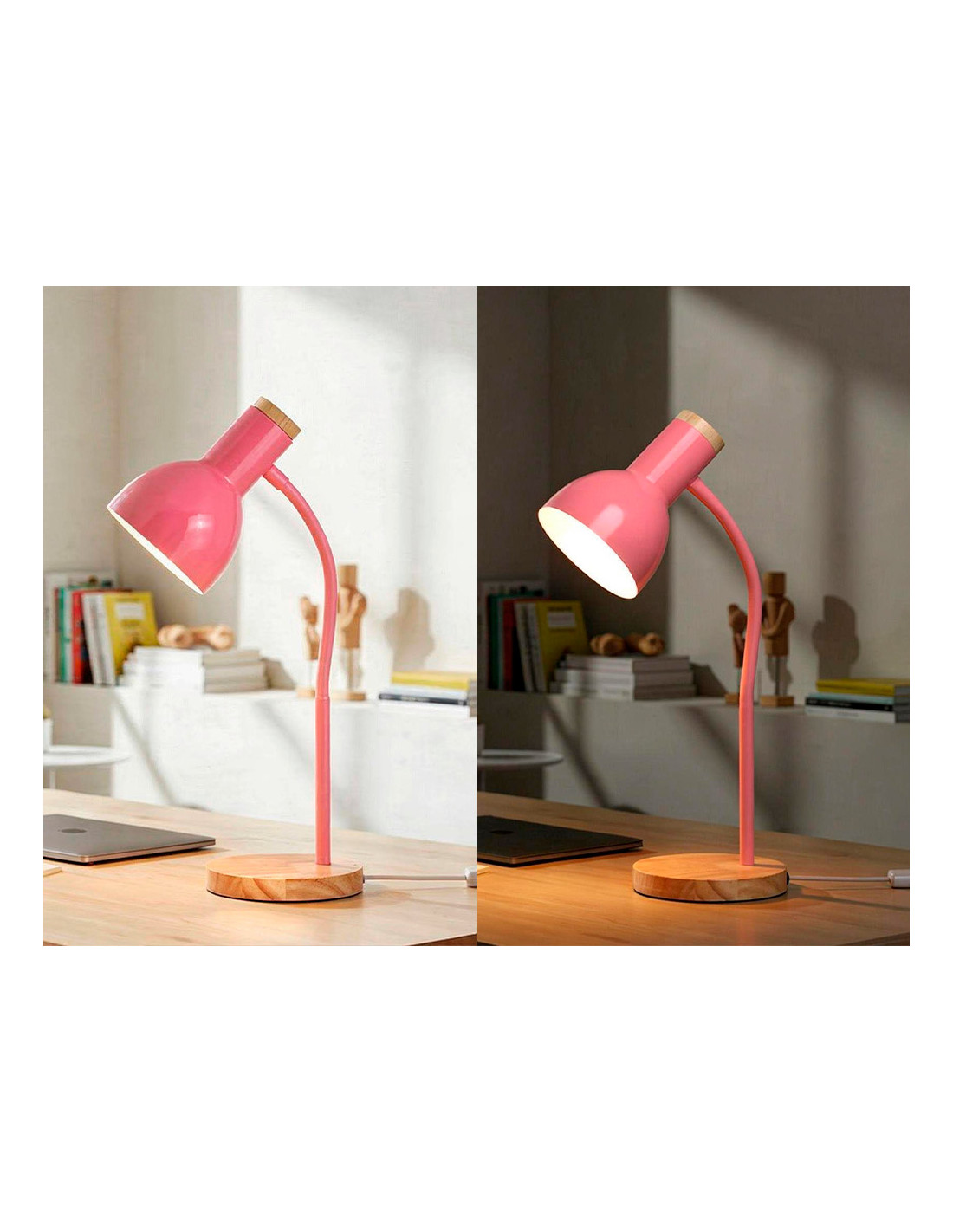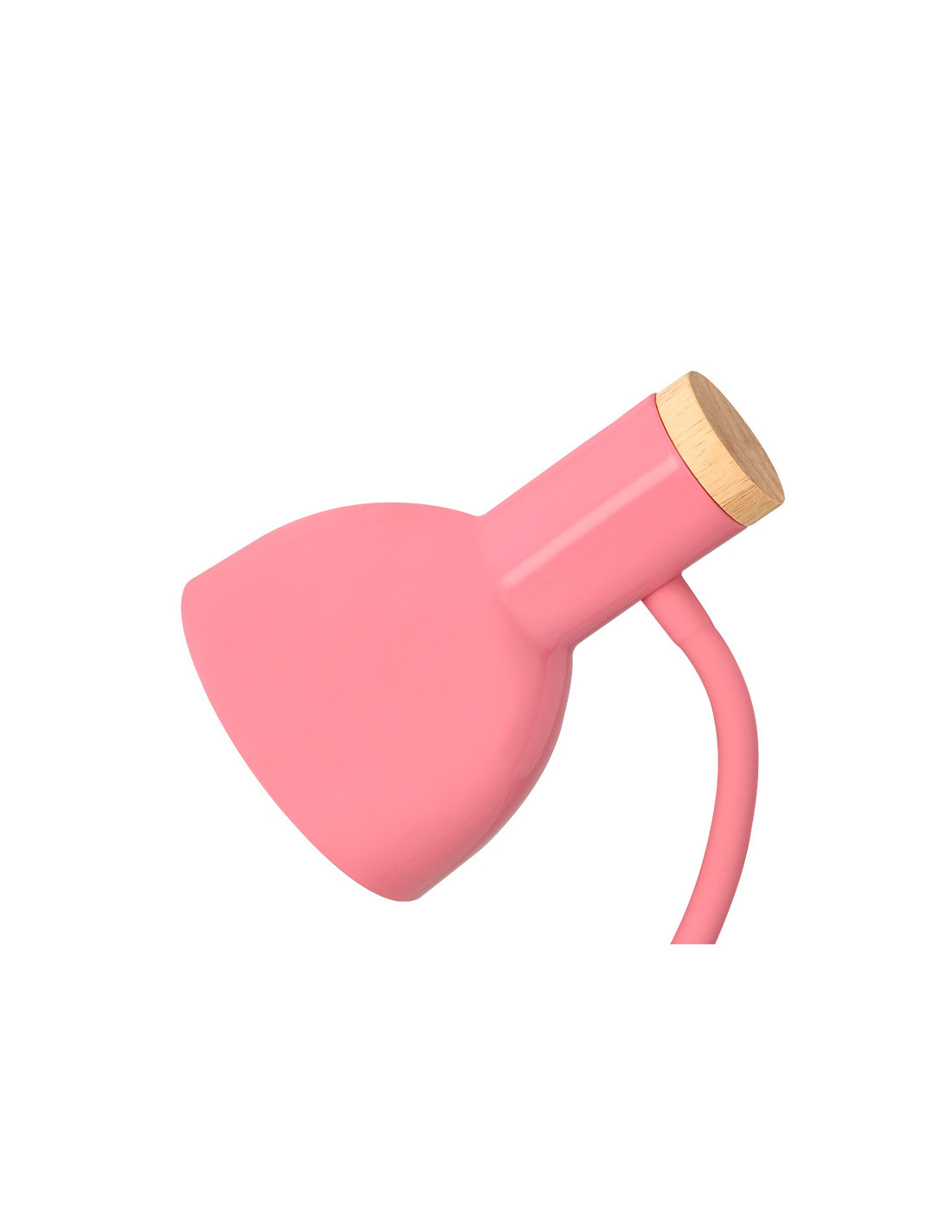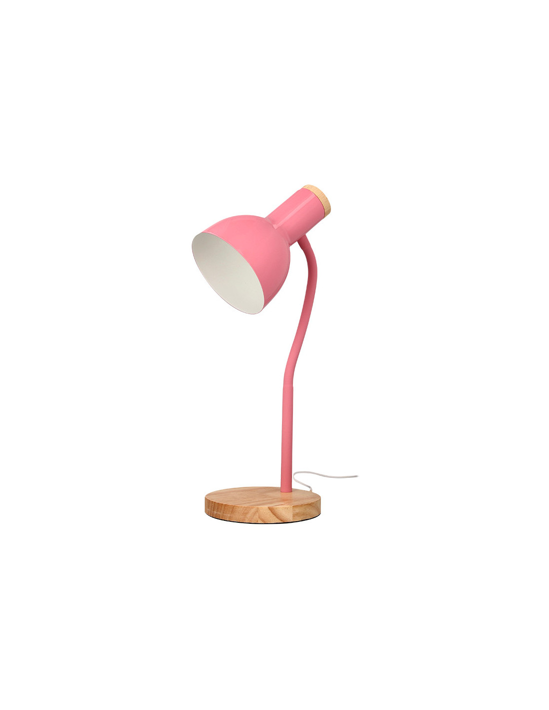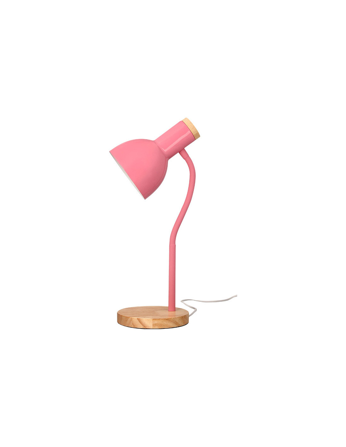 Lampara de escritorio q-connect orion metalica con detalles de madera brazo flexible color rosa