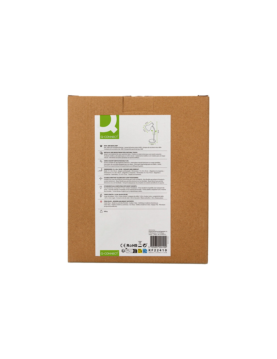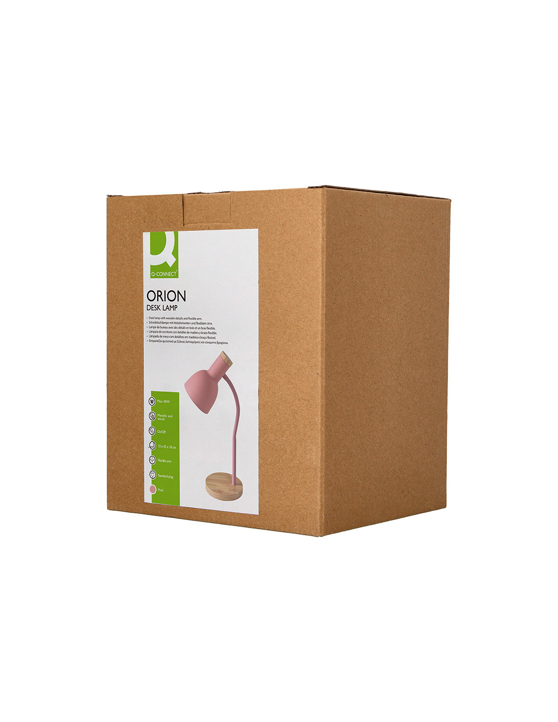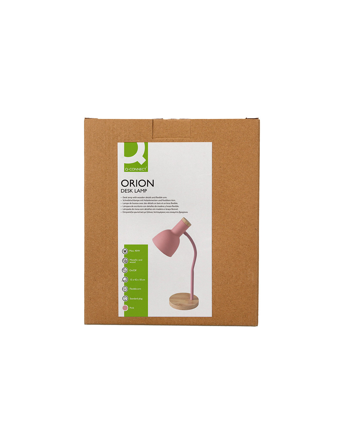 La lámpara de escritorio Q-Connect Orión combina funcionalidad y diseño en un accesorio moderno y resistente. Con su estructura metálica complementada por detalles en madera, ofrece una iluminación focalizada y ajustable, ideal para ambientes de estudio o trabajo. Su acabado en color rosa añade un toque de frescura y estilo, mientras que su brazo flexible facilita orientar la luz según las necesidades específicas del usuario.