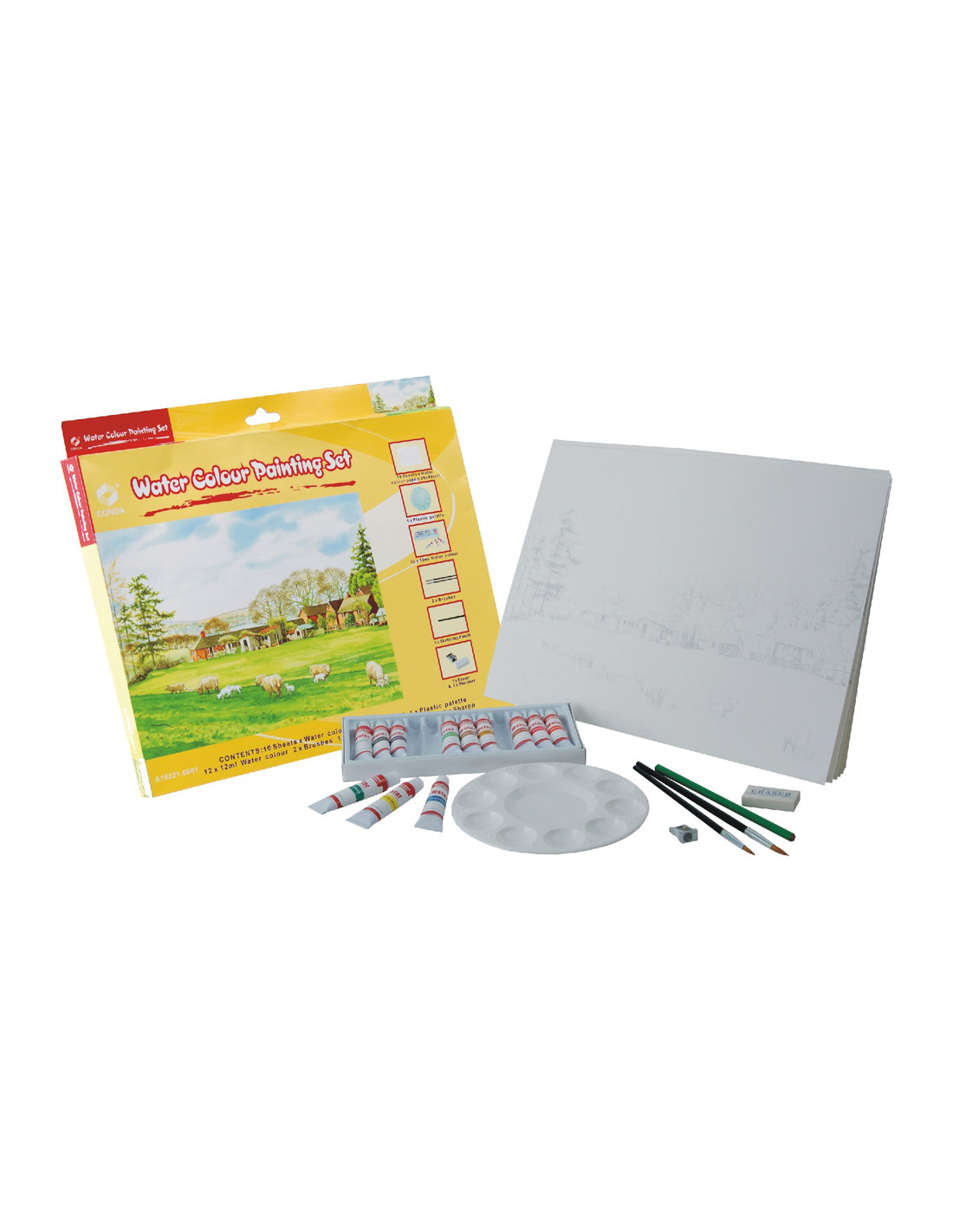 Set acuarela lidercolor contiene 10 laminas acuarela 27x38cm 1 paleta plast 12x12ml1 sacapunt 1 perfilador 1 goma
