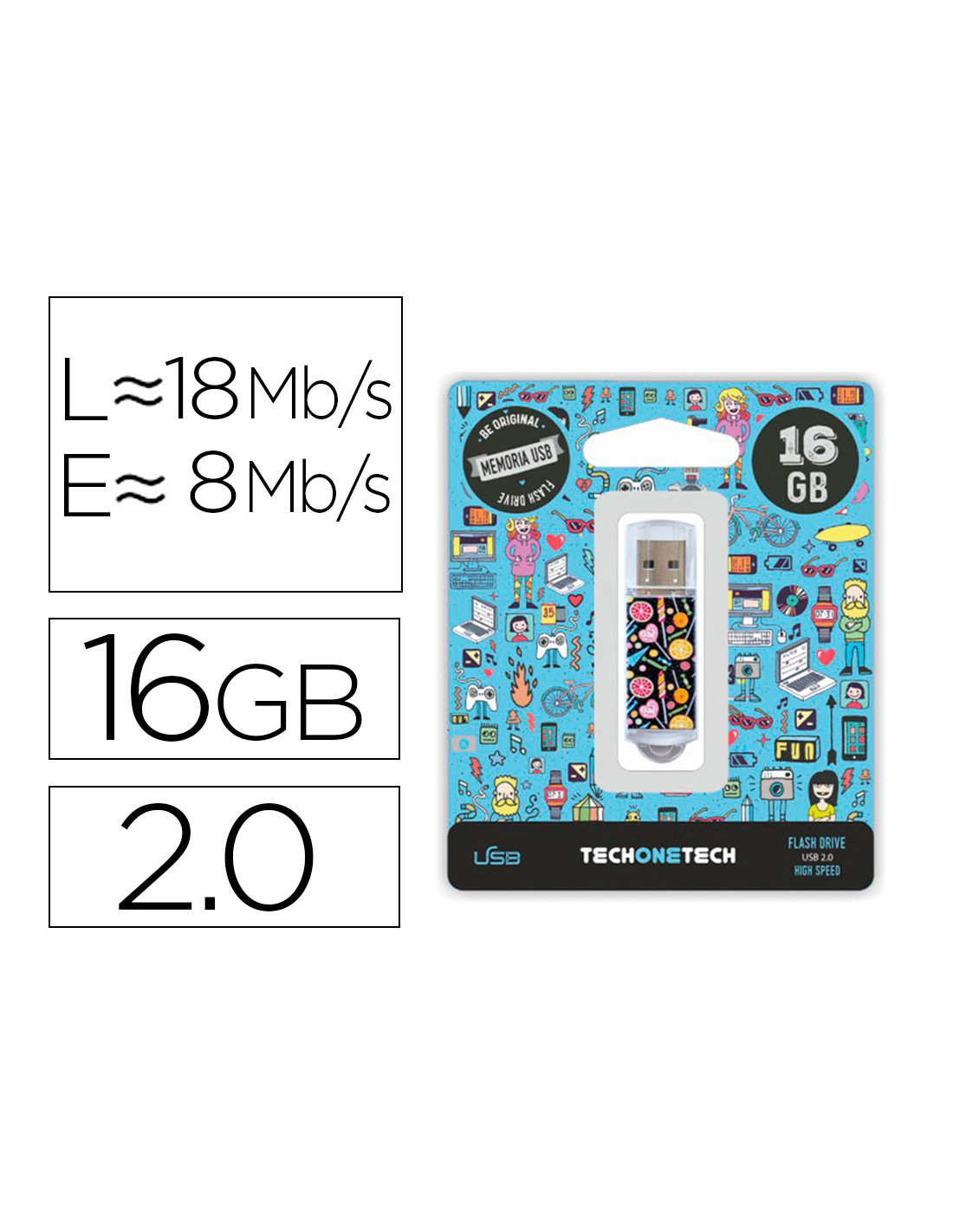 Memoria usb techonetech flash drive 16 gb 2.0 camper van-van