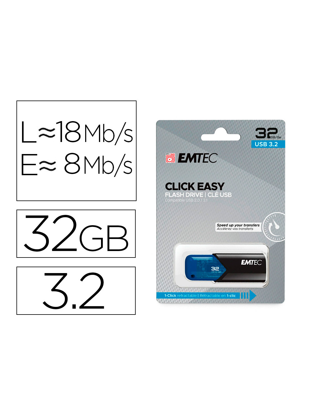 Memoria emtec usb 3.2 click easy 32 gb azul