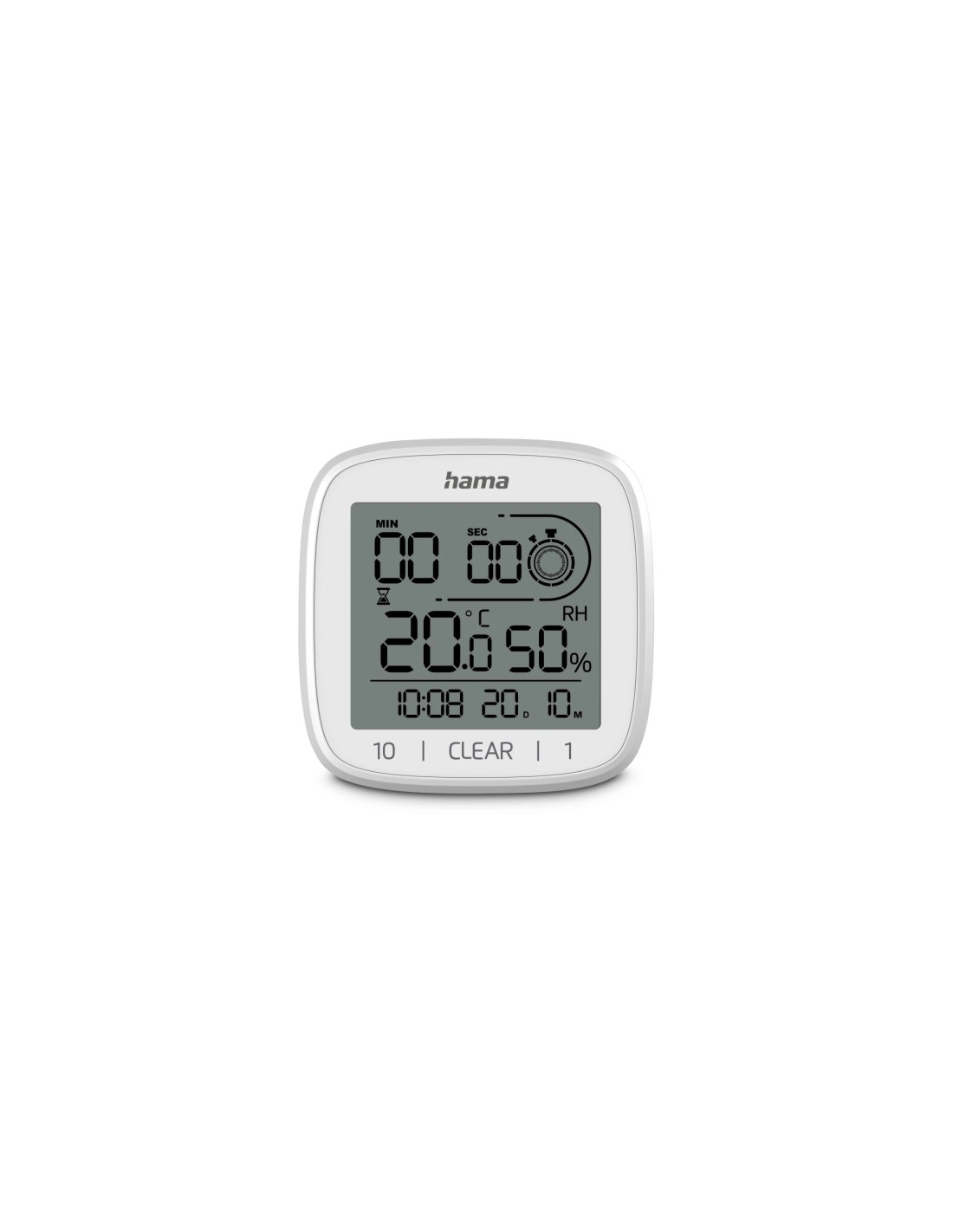 Hama Chipre Reloj Digital con Ventosa - Termometro - Higrometro - IPX4 - Funcion Cuenta Atras - Fecha - 11x11x4.5cm - Color Blan