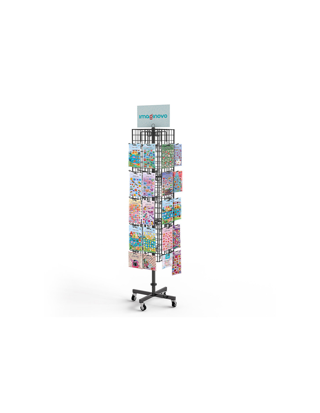 Pegatinas imaginovo expositor metalico giratorio con 40 ganchos ajustables surtido cerrado 630 uds 1874x532x532