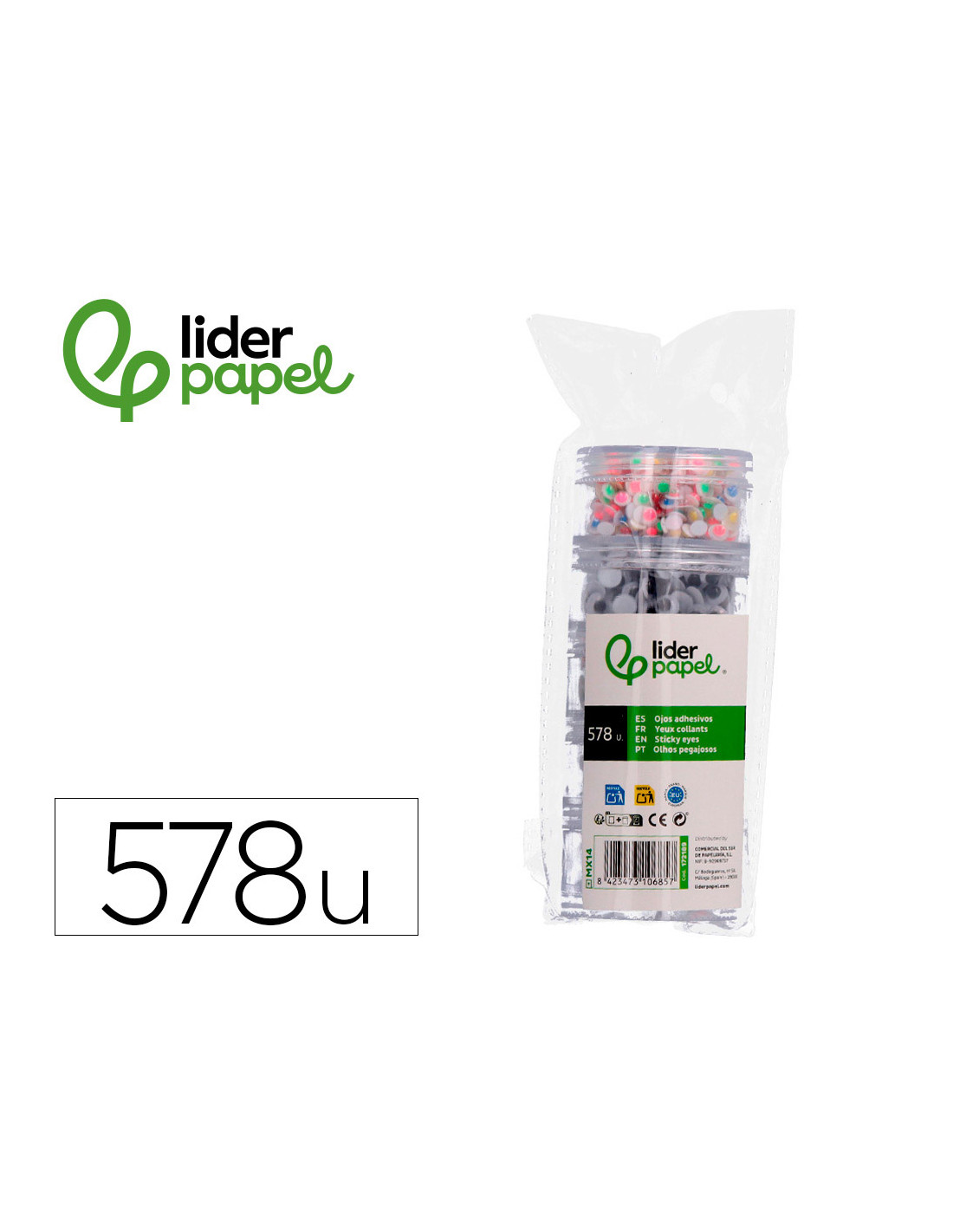 Ojo adhesivo liderpapel tamaños y colores surtidos 5 botes adaptables con 578 unidades