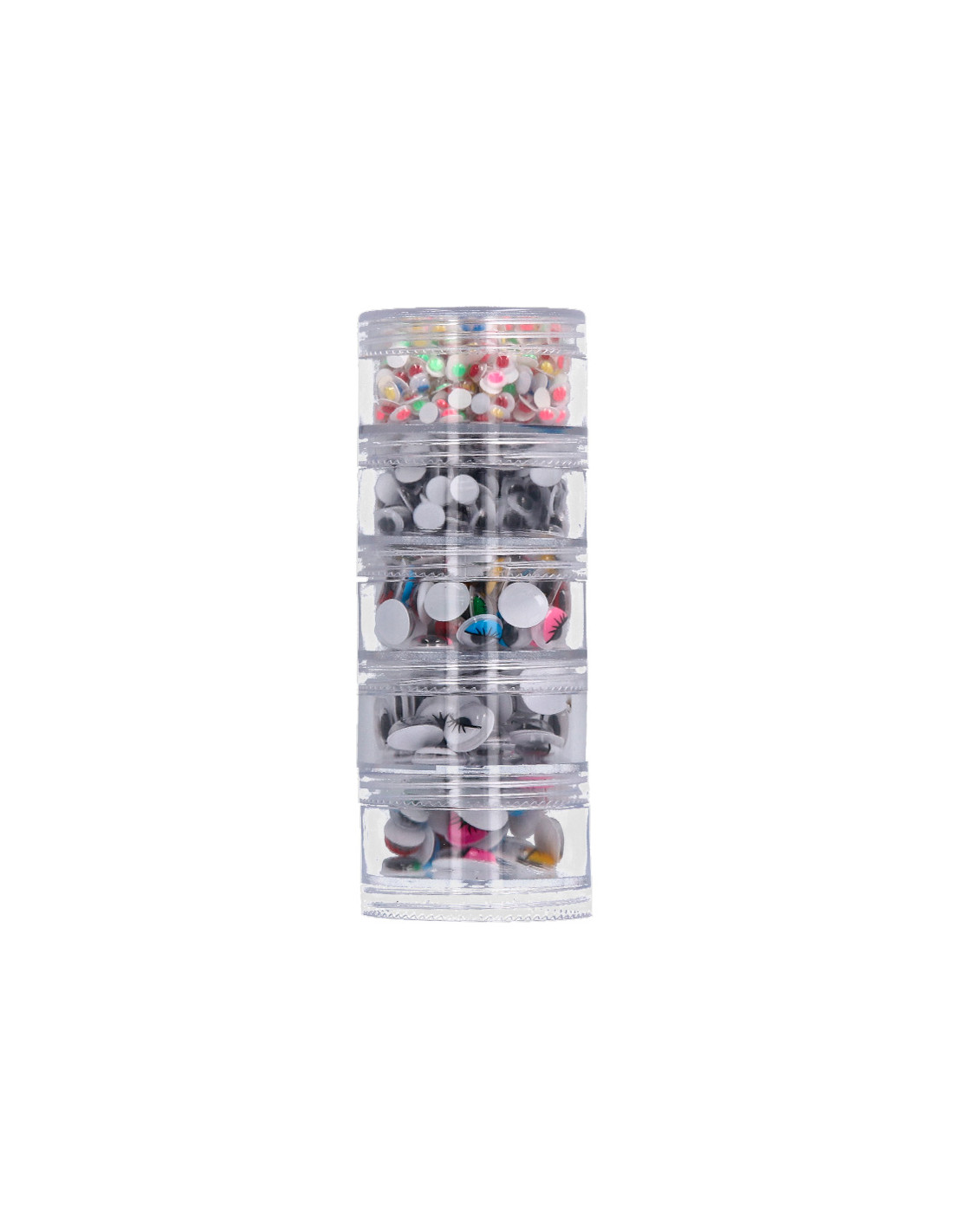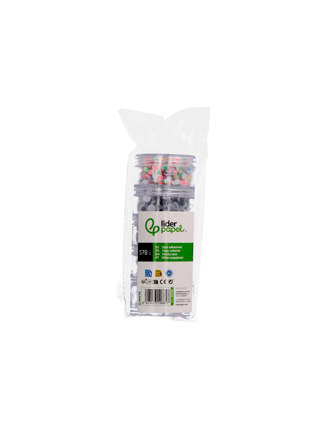 Este conjunto de ojos adhesivos de Liderpapel es el aliado ideal para tus proyectos de manualidades a gran escala. Con un total de 578 unidades en diversos tamaños y colores, distribuidos en cinco botes prácticos y adaptables, tendrás todo lo necesario para dar un toque especial a tus creaciones. Perfectos para actividades escolares, proyectos artísticos o talleres creativos, estos ojos adhesivos son fáciles de usar y aportan un detalle expresivo a cualquier manualidad.