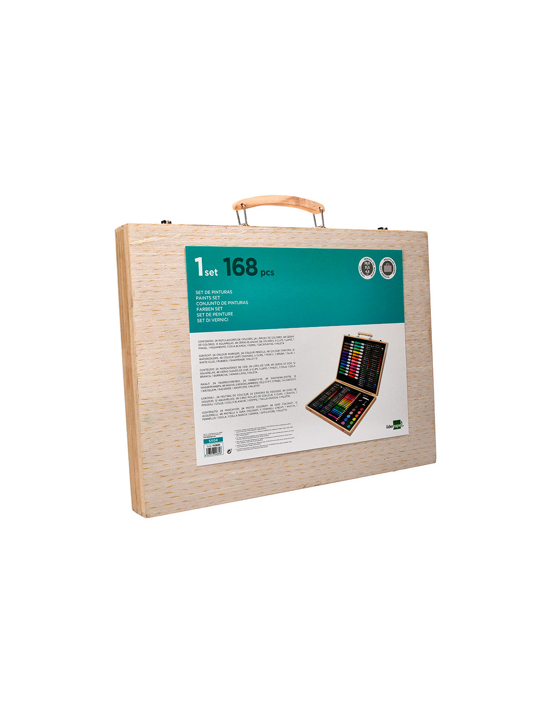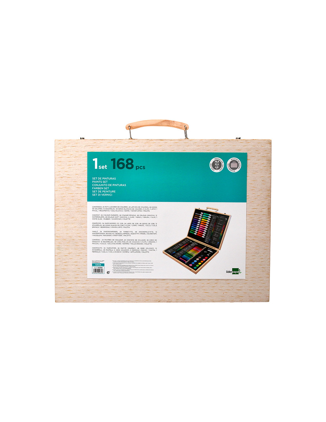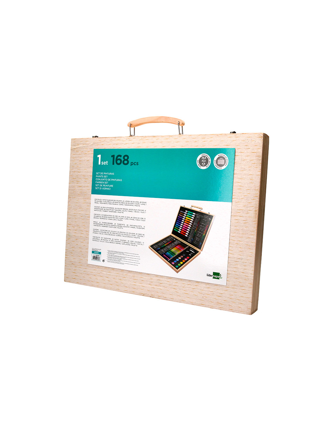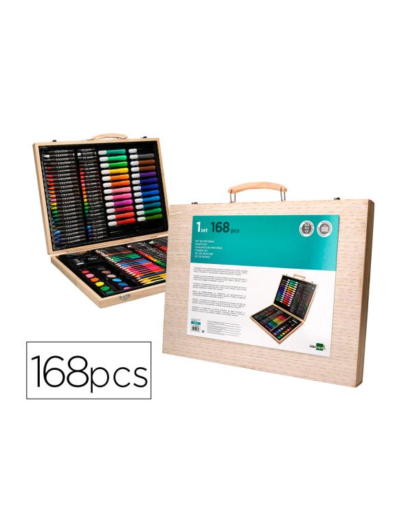 Estuche de pintura liderpapel madera 168 piezas maletin 39,3x30x4,8 cm