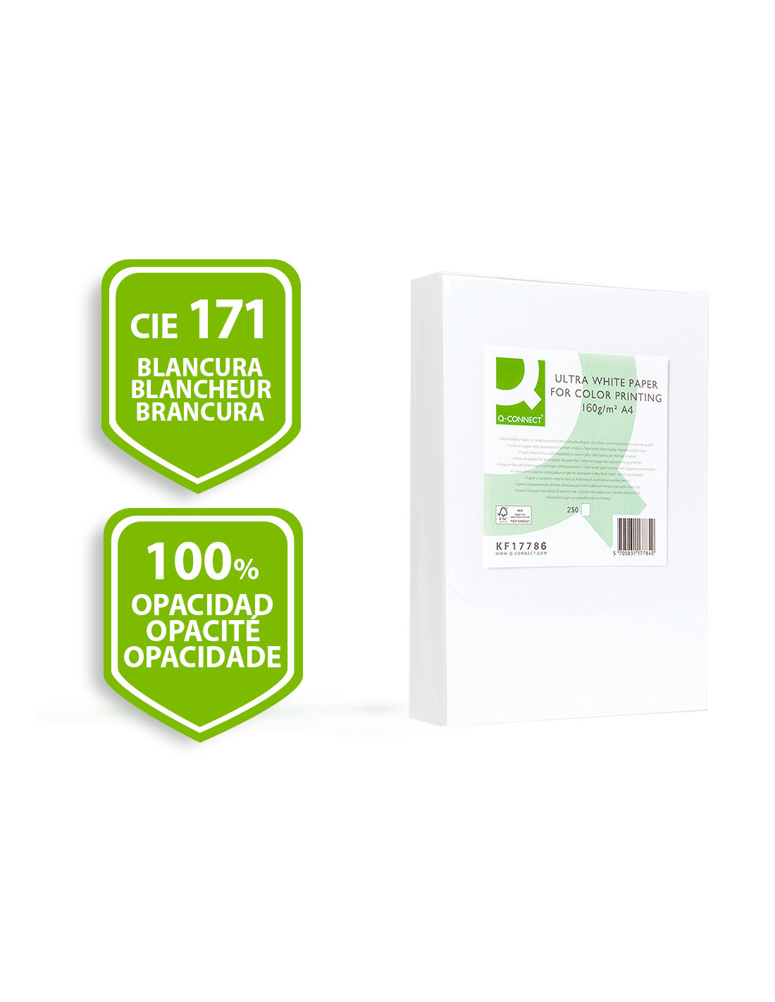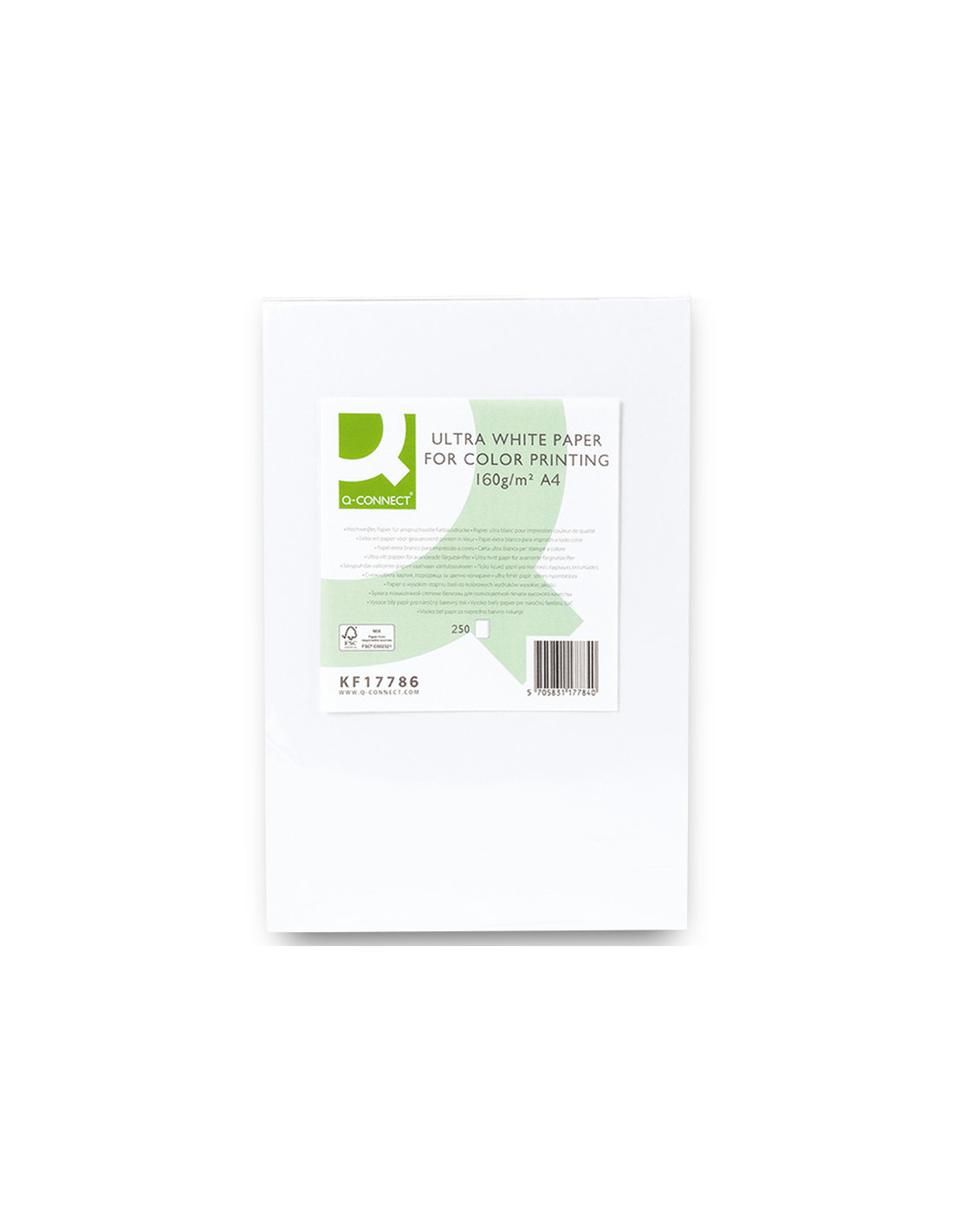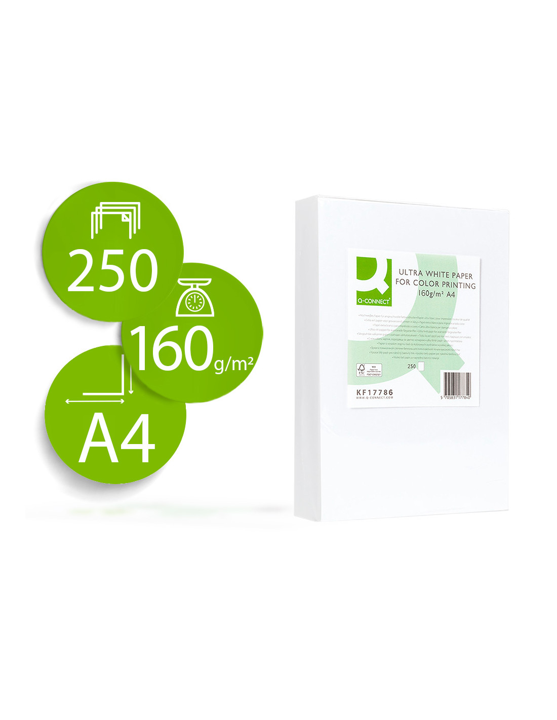 Papel fotocopiadora q-connect ultra white din a4 160 gramos paquete de 250 hojas