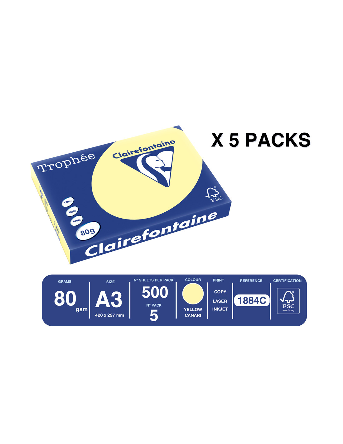 Papel color trophee a3 80gr canario pastel paquete de 500 hojas