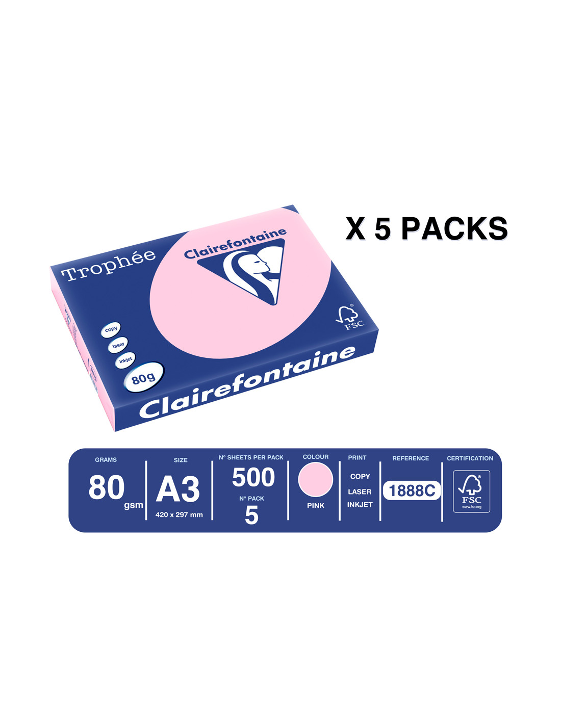 Papel color trophee a3 80gr rosa pastel paquete de 500 hojas