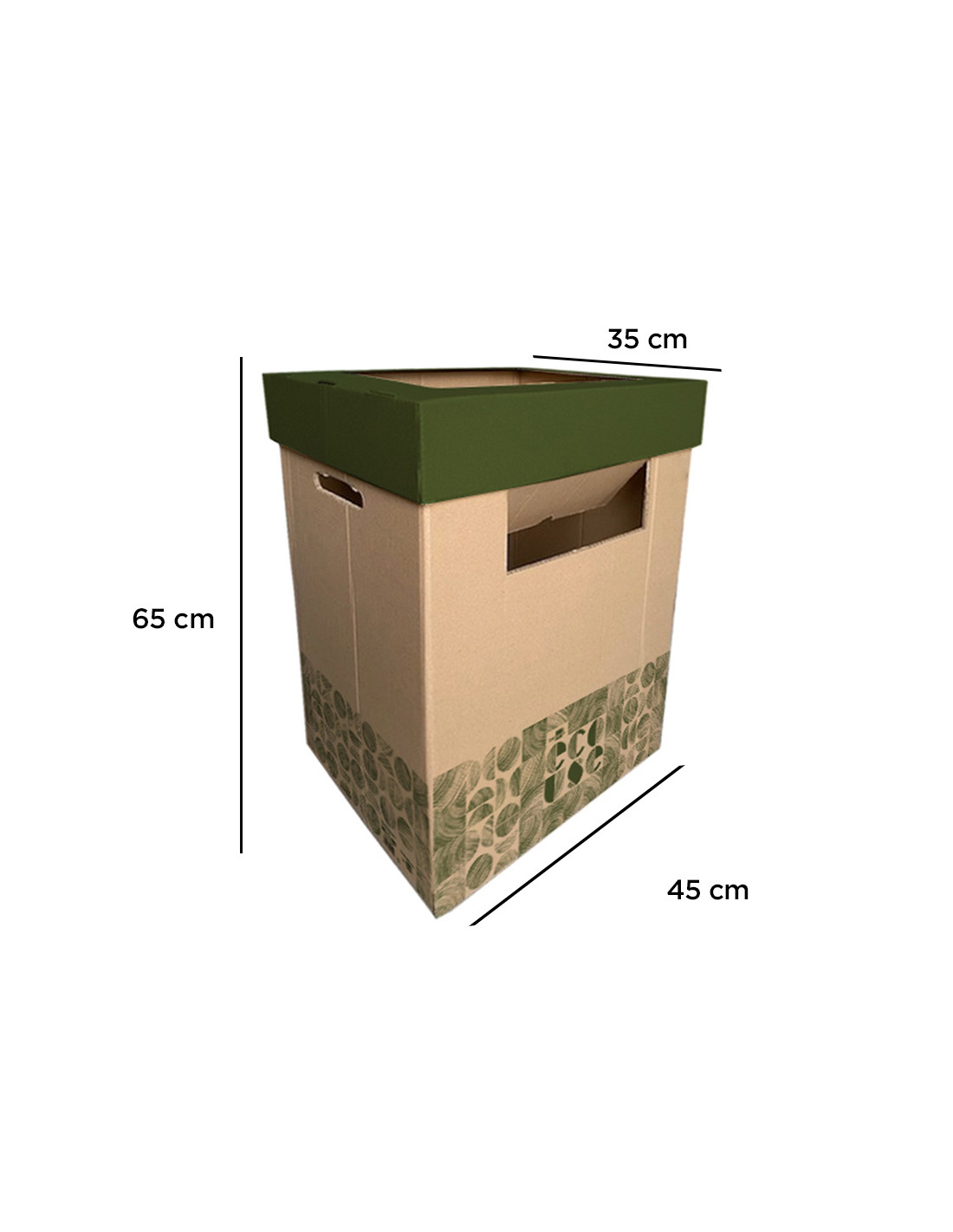 Contenedor papelera reciclaje liderpapel ecouse carton 100% reciclado y reciclable 70 litros 450x350x650 mm