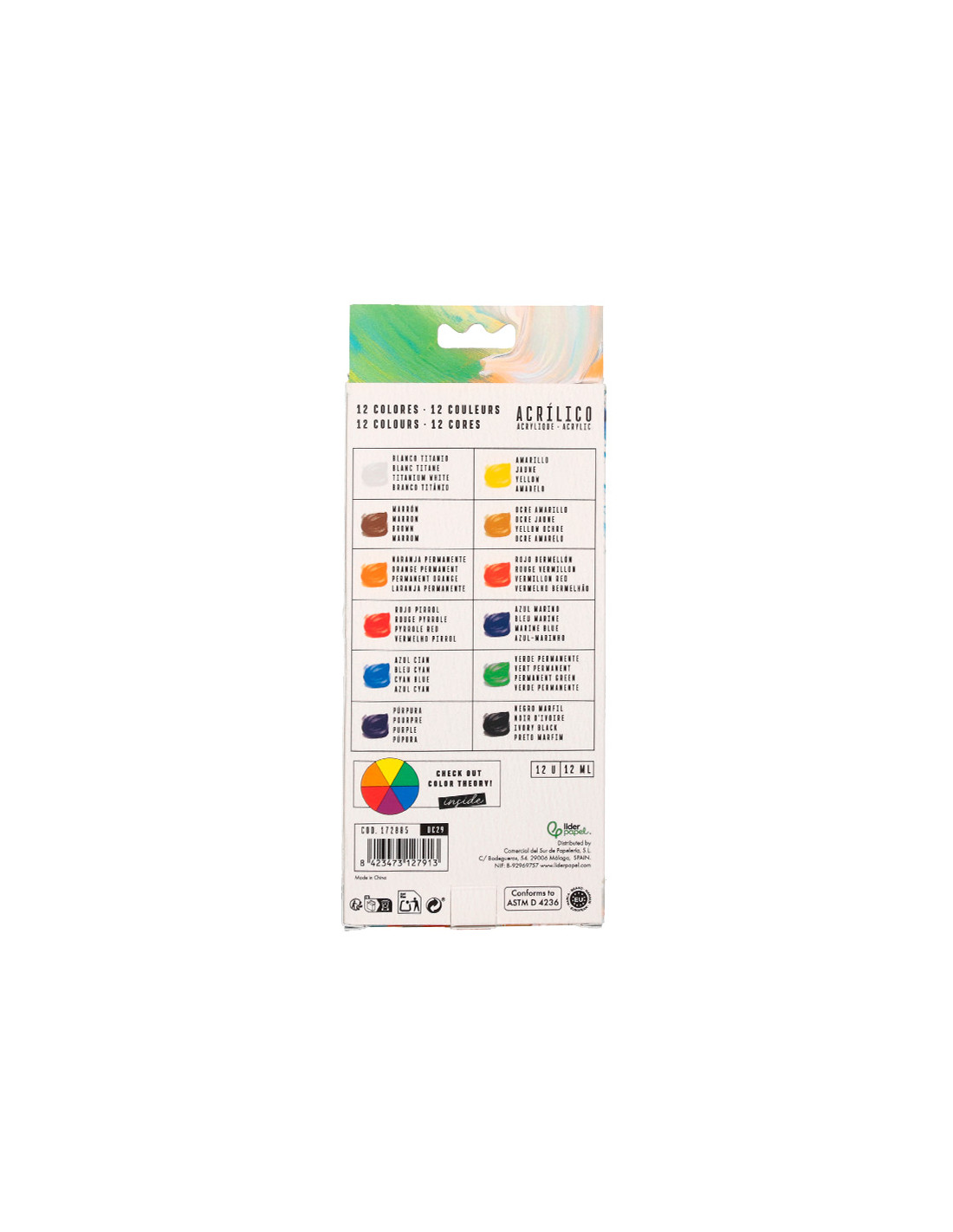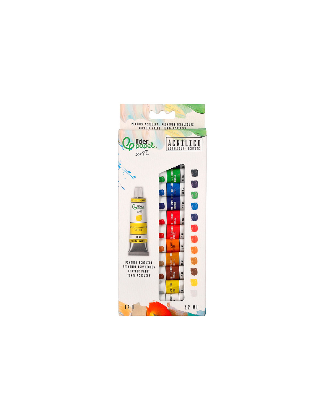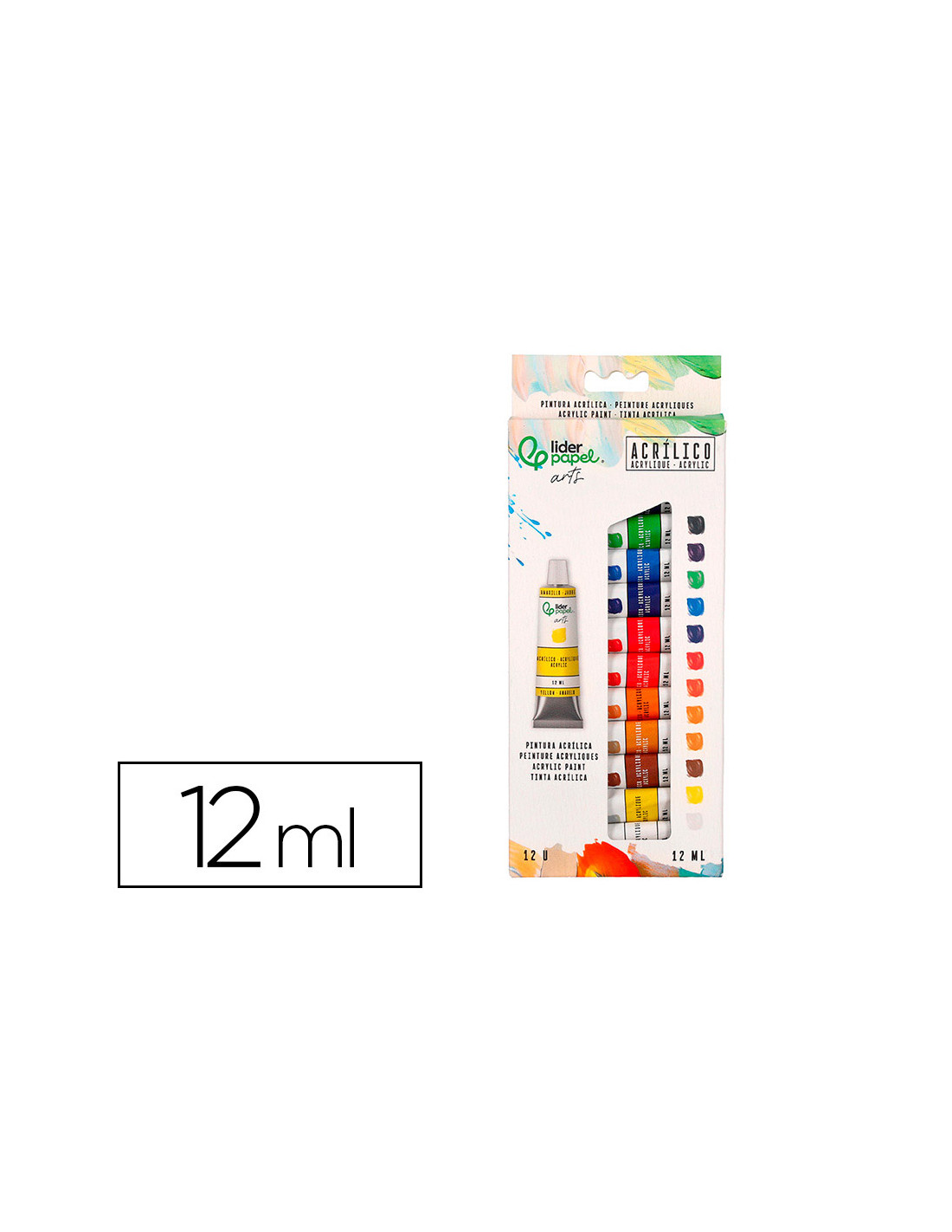 Pintura acrilica liderpapel caja de 12 tubos de aluminio de 12 ml colores surtidos