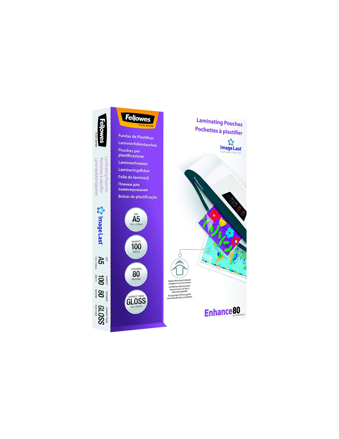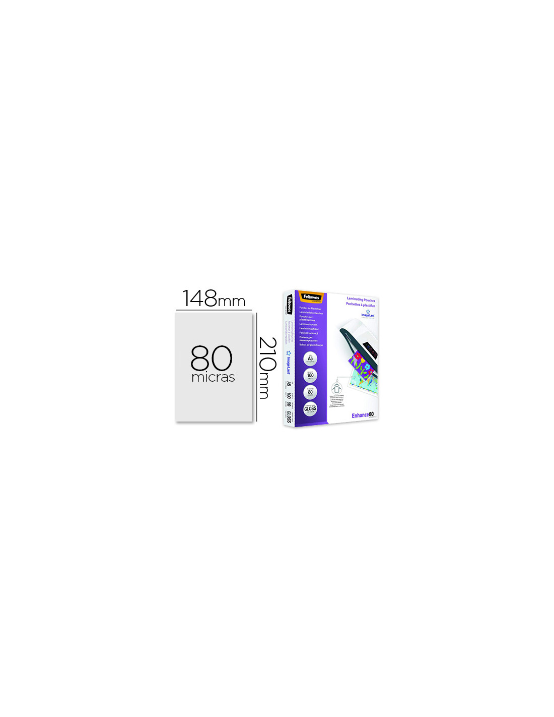 Bolsa de plastificar fellowes brillo din a5 80 mc pack 100 unidades