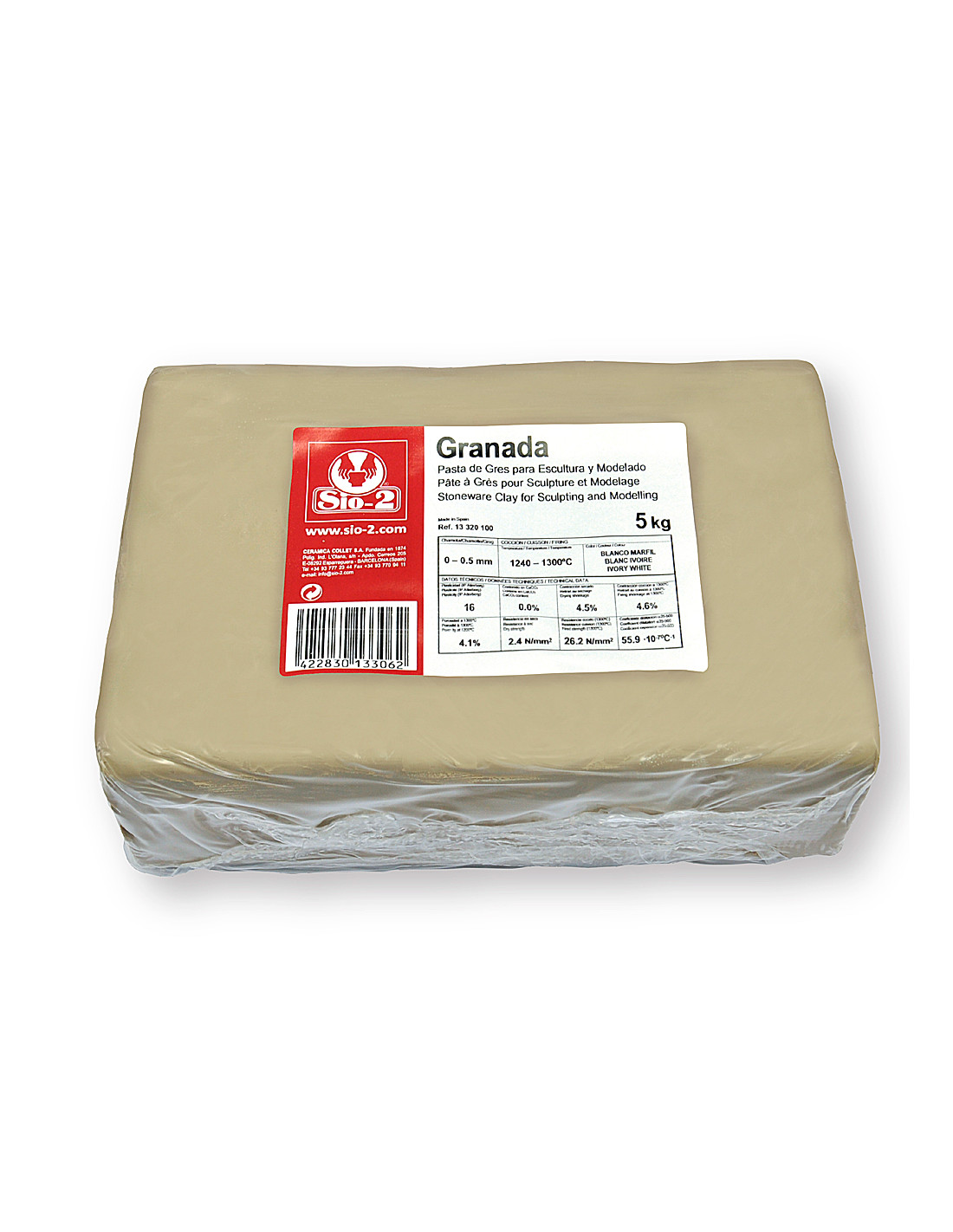 Pasta de Modelar SIO-2 Gres Granada para Escultura y Modelado Paquete de 5 kg es el material ideal para escultores y modeladores, gracias a su plasticidad excepcional y su color blanco marfil una vez cocido. Este producto de alta calidad se adapta a una variedad de técnicas de modelado y escultura, proporcionando resultados profesionales.