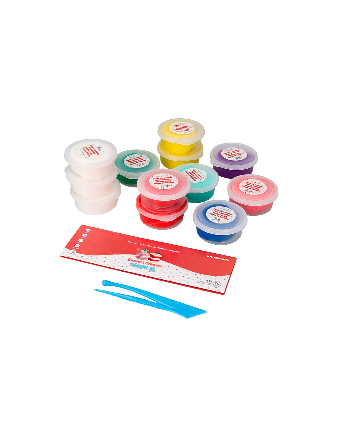 Pasta para modelar imaginovo de secado al aire set de 12 colores shape it dessert dream herramientas e instrucciones