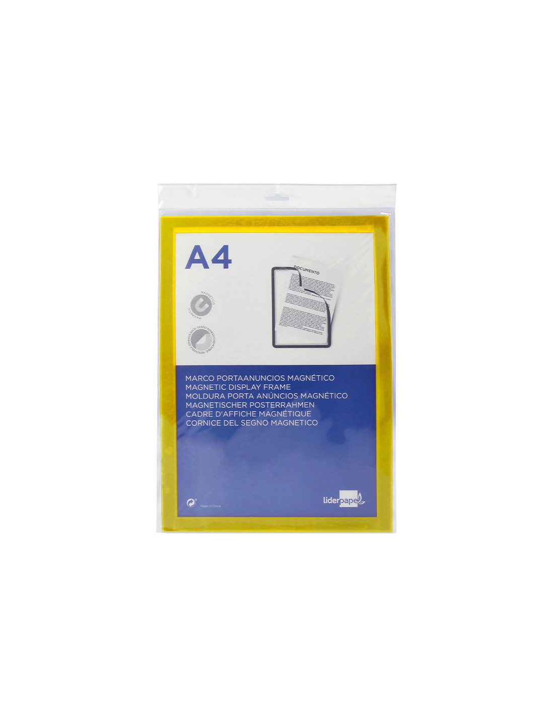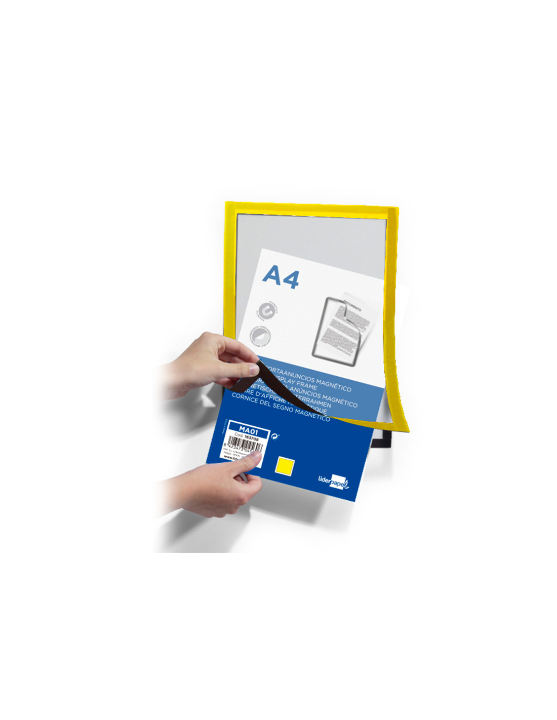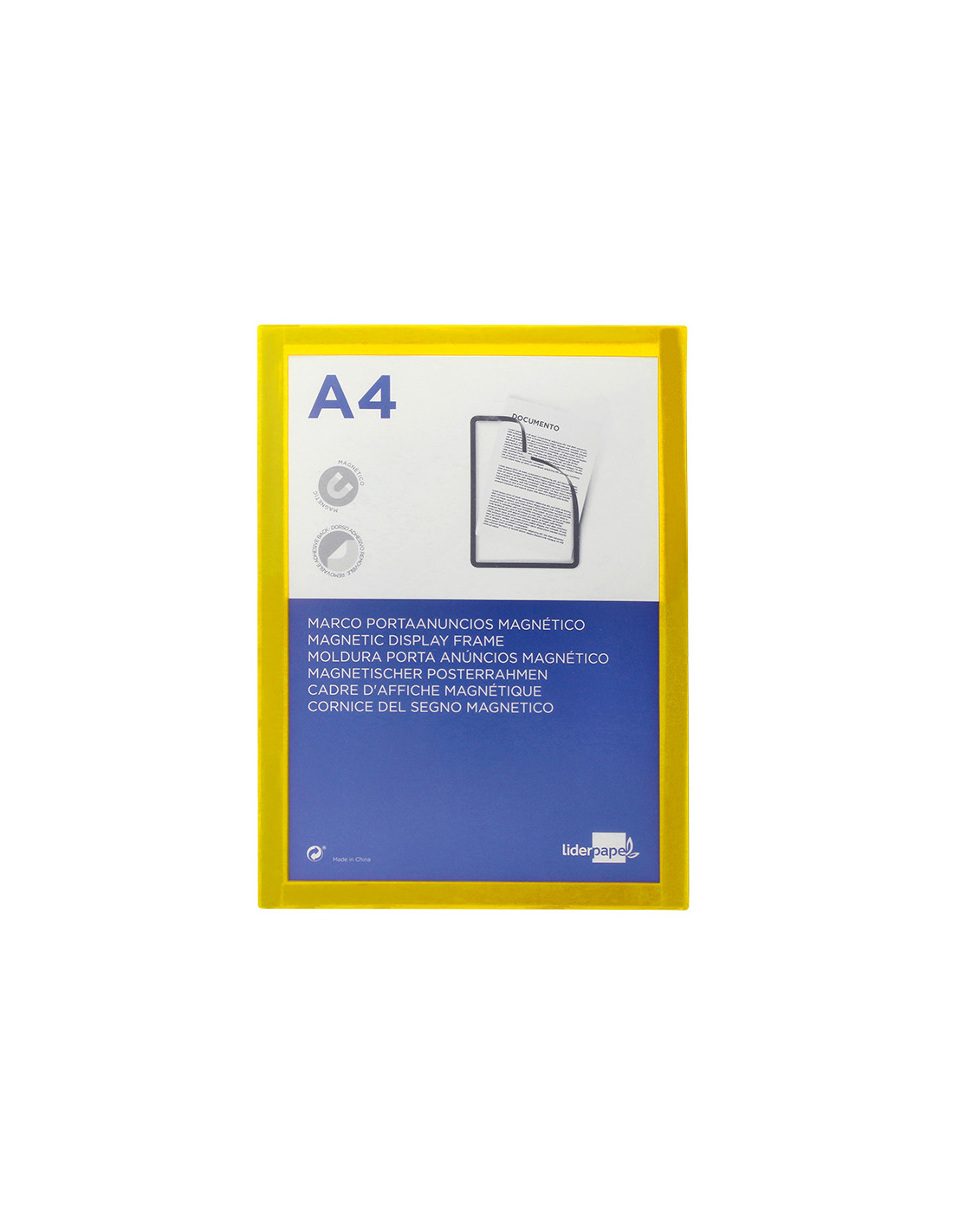 Marco porta anuncios liderpapel magnetico din a4 dorso adhesivo removible color amarillo
