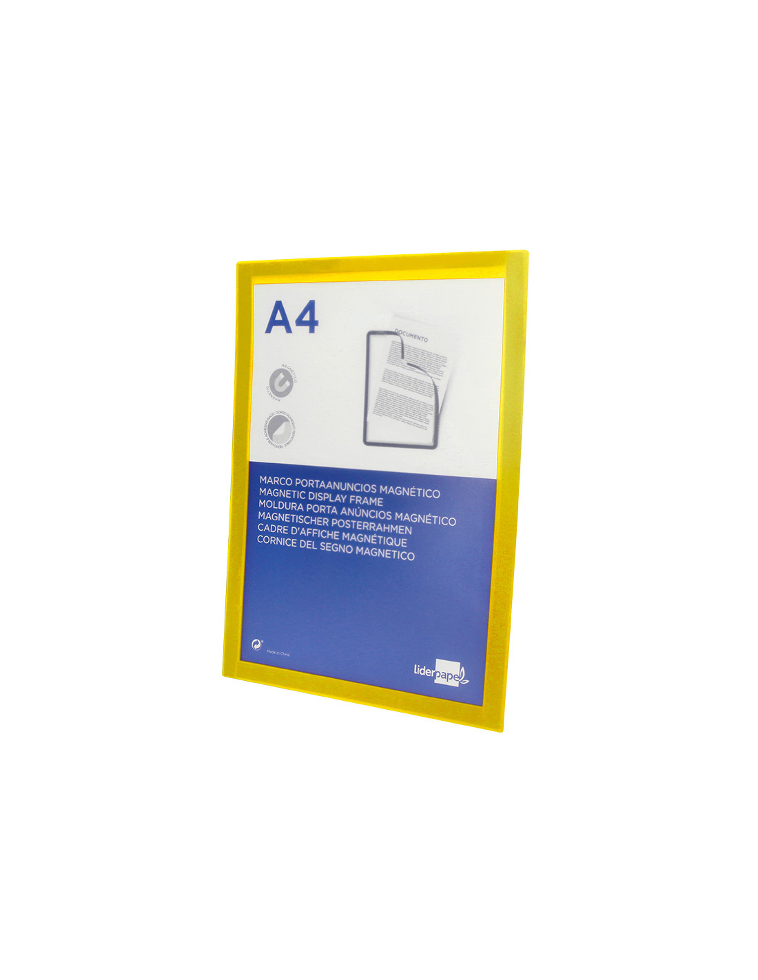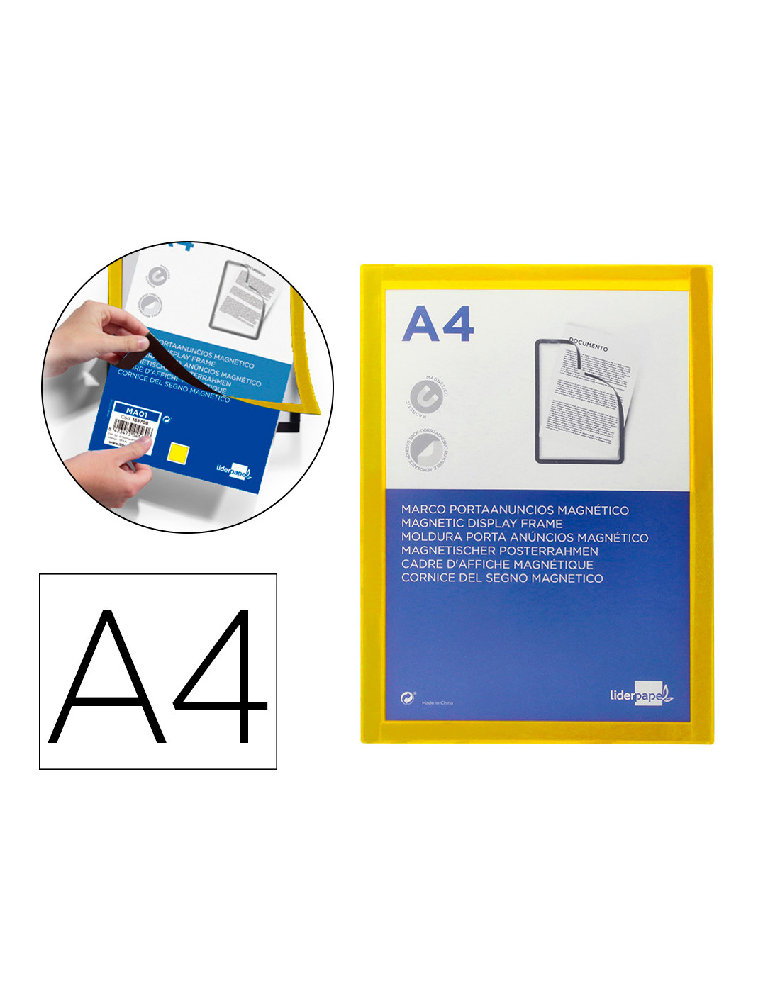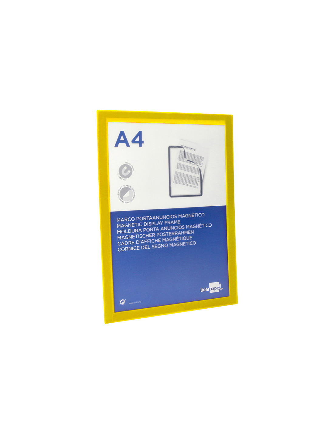 Marco porta anuncios liderpapel magnetico din a4 dorso adhesivo removible color amarillo