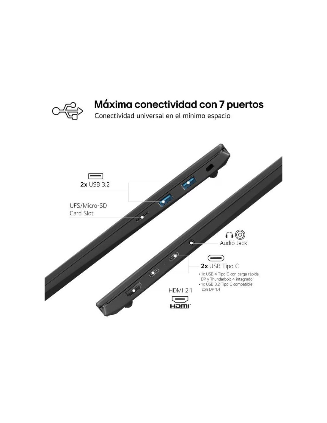 Conectividad universal con hasta 7 puertos