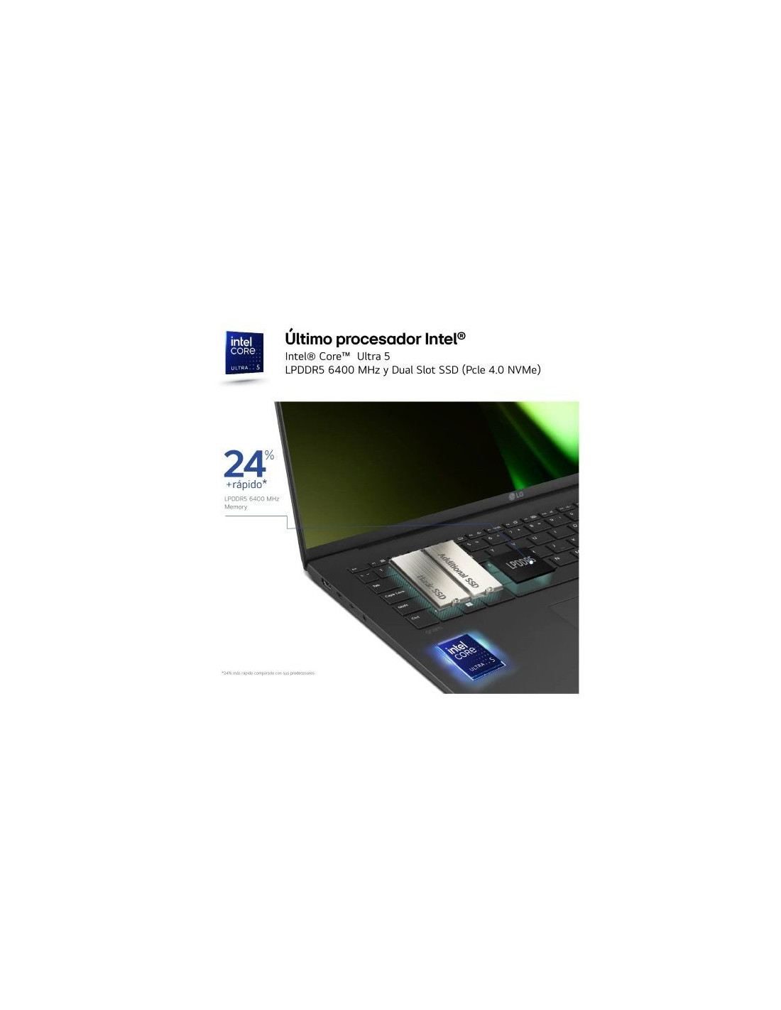Experimenta una potencia adaptada a tus exigencias. Con el procesador Intel® Core™, Ultra 5, LG gram te permite obtener un rendimiento a la altura de tu demanda.