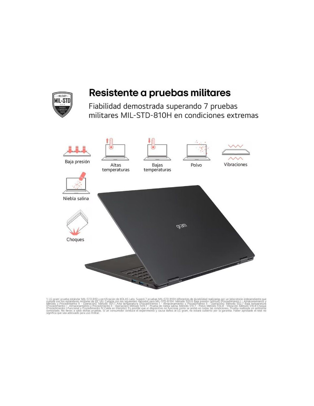 Con solo 1.120 g de peso combinado con un grosor de 15,7 mm, LG gram se adapta libremente a cualquier estilo de vida. Diseñado para superar rigurosas pruebas militares, este diseño demuestra que la durabilidad y la elegancia pueden ir de la mano.